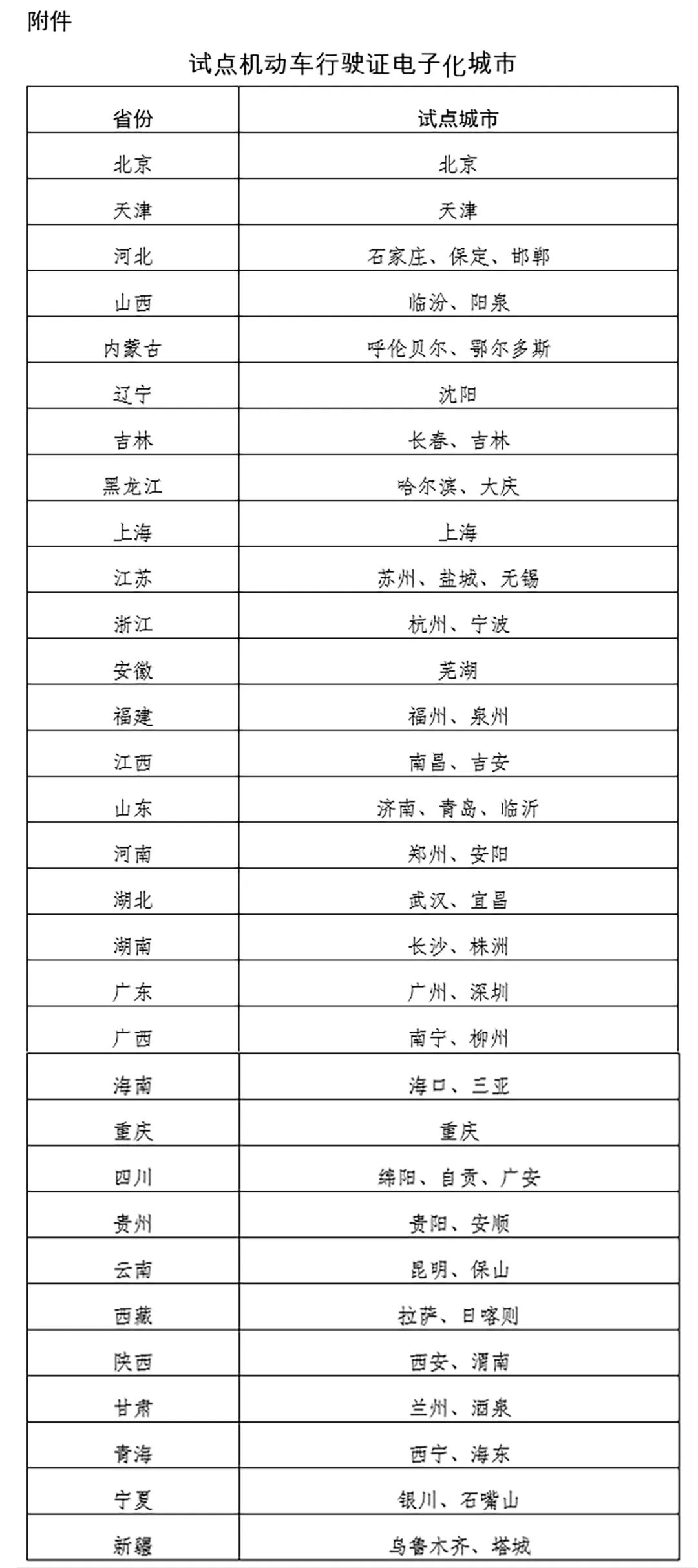 自今年7月1日起,将在北京、天津、武汉等60个城市试点推行机动车行驶证电子化,为机动车所有人以及相关行业和管理部门提供行驶证在线“亮证”“亮码”服务。据了解,此次60个试点城市发放的电子行驶证在全国范围内有效。