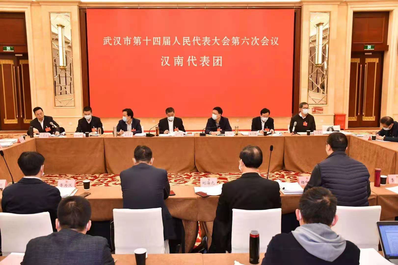 130日,参加武汉市第十四届人民代表大会第六次会议的汉南代表团召开会议,审议政府工作报告、审查“十四五”规划和二三五年远景目标纲要草案。市人大代表和列席代表参加会议积极建言献策。