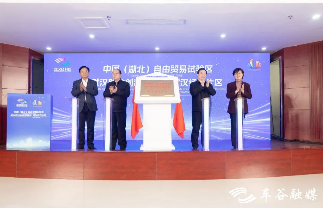 刘子清、汪元程、陈华荣、李燕共同为湖北自贸区武汉联动创新发展区武汉经开片区揭牌。