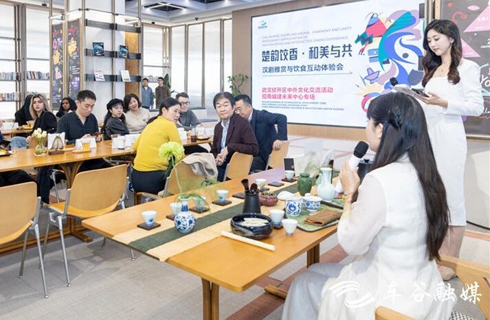 11月13日,“楚韵饺香 和美与共”武汉经开区中外文化交流活动在招商·未来中心花园里举行,来自美国、法国、日本、韩国、波兰等国家的外籍友人在这里品茗、看汉剧、包饺子,沉浸式体验中华文化。