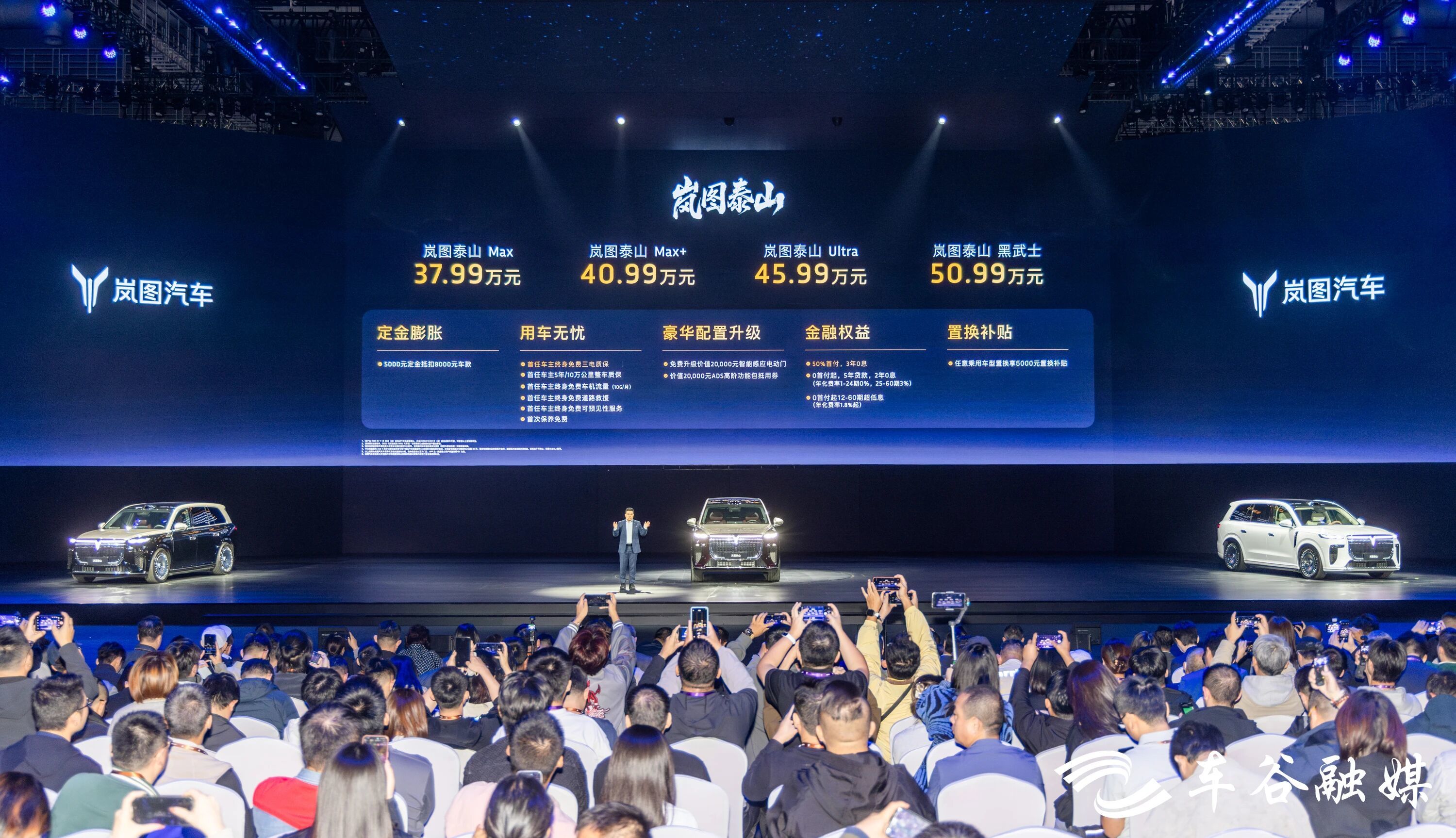 此次,岚图泰山共推出四款车型,售价区间为37.99万元至50.99万元。目前,岚图泰山首批量产车已正式抵达全国100家岚图空间与体验店,覆盖北京、上海、深圳、武汉、成都、杭州等54座城市。