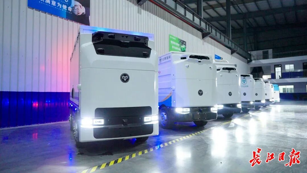 12月11日上午,在武汉经开区的一处测试道路上,几辆蓝白配色的无人驾驶洗扫机器人正缓缓移动。它们灵活绕开临时停靠的车辆,将落叶与纸屑“吞”入肚子中,同步完成喷水、洗扫。