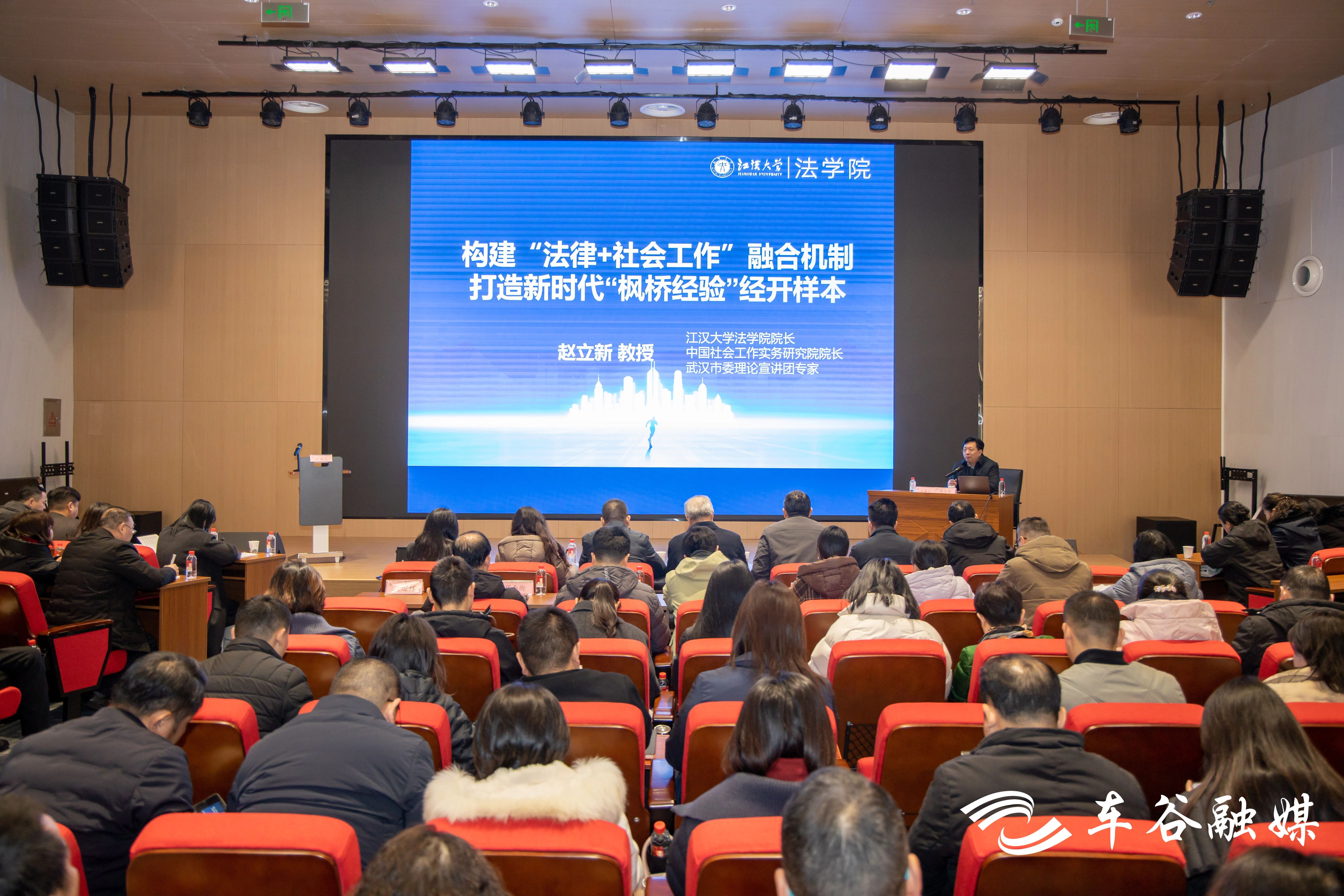 基层治理中社会工作的难点在哪里?如何推动工作创新?“学思践悟”大讲堂首期邀请了江汉大学法学院院长赵立新教授以《构建“法律+社会工作”融合机制,打造新时代“枫桥经验”经开样本》为题作专题授课。讲座内容紧扣当前基层治理的热点与难点,融汇理论前沿与区域实际,受到在场基层治理骨干的一致好评。
