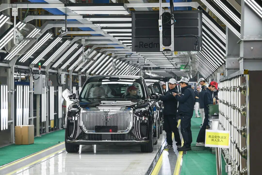 ▲岚图工厂总装车间,工人在对即将下线的岚图泰山进行检验。 记者史伟摄