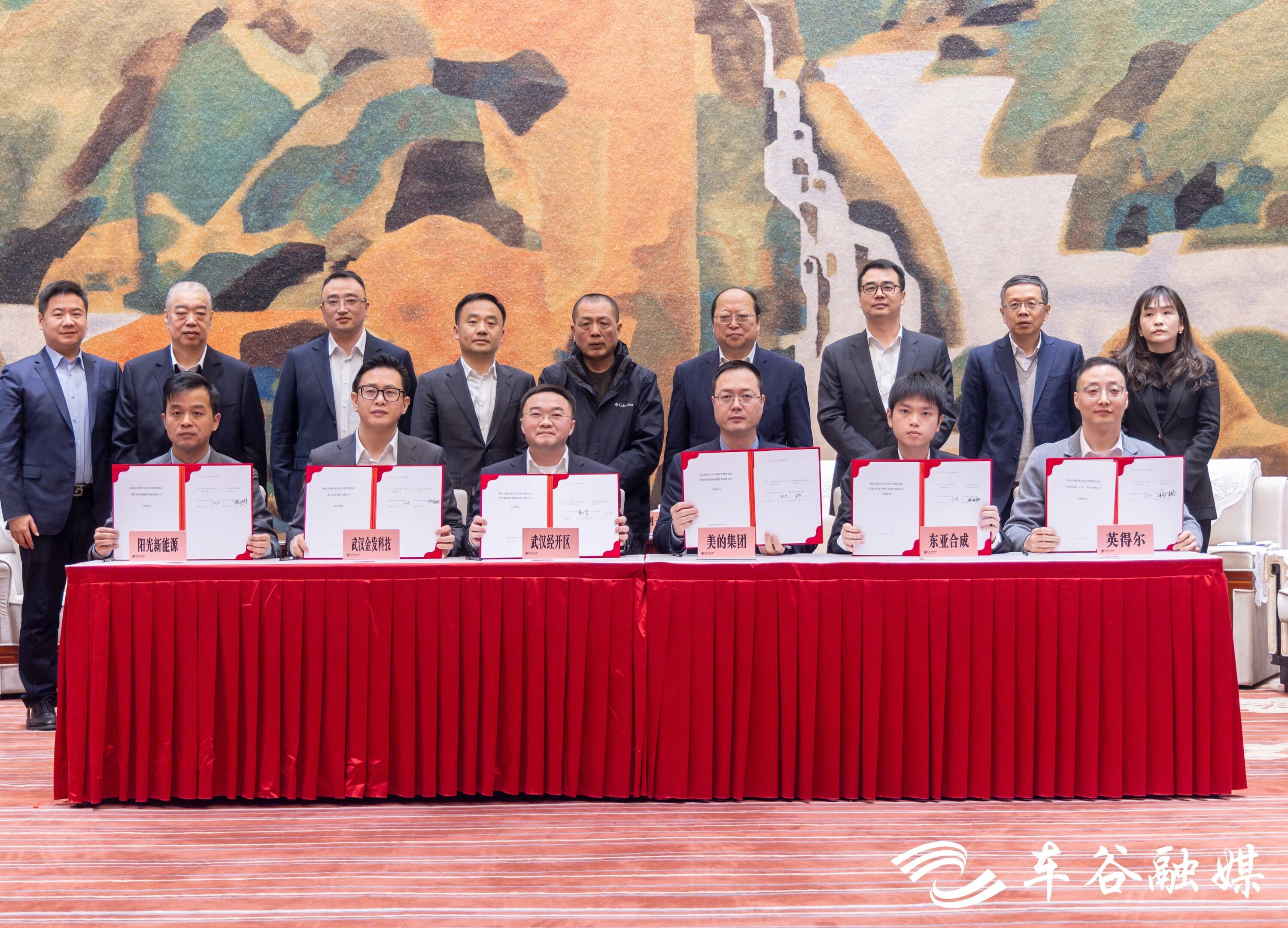 市委常委、武汉经开区党工委书记刘子清,武汉经开区党工委副书记、管委会主任赵永强,区人大常委会主任陈明骏,区政协主席徐安见证签约。