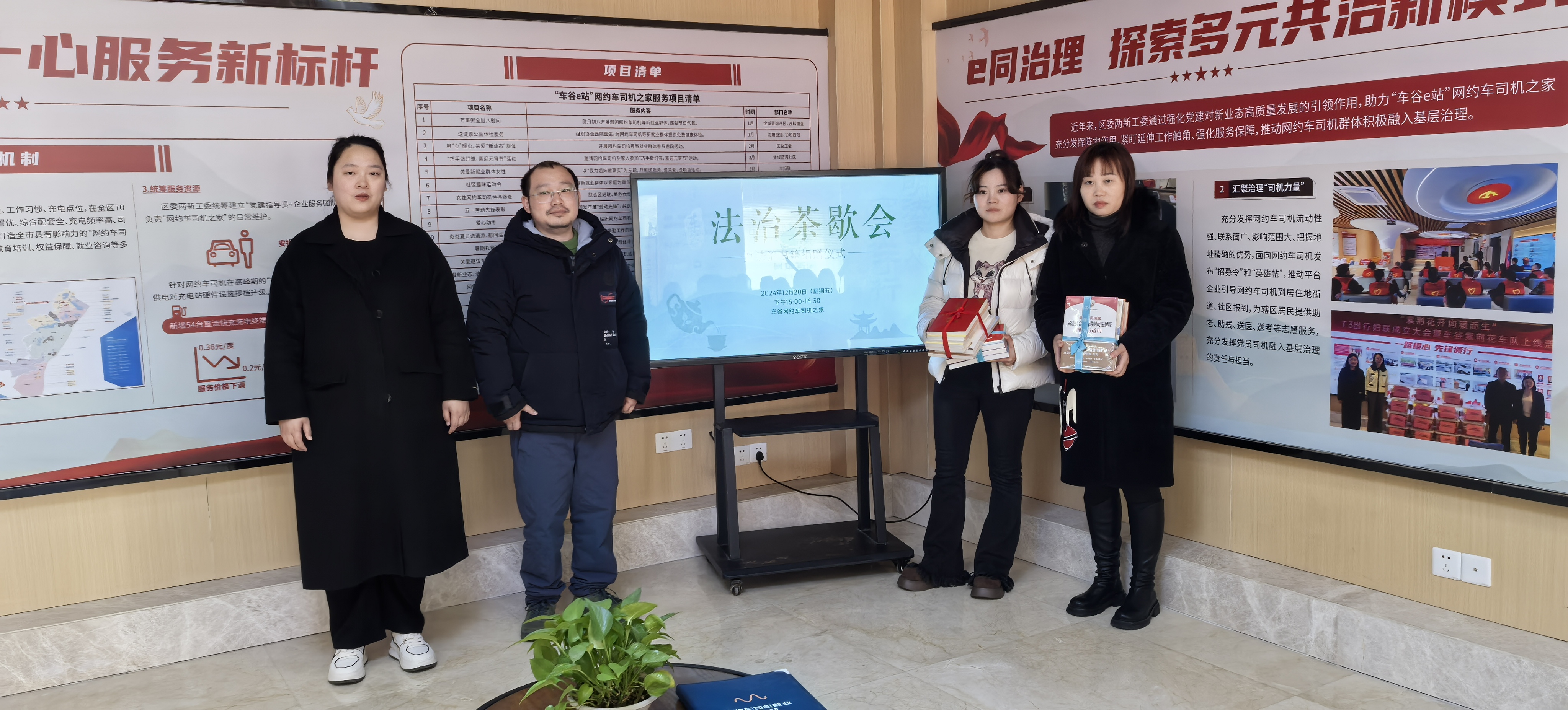 12月20日,武汉经开区工委政法委(司法局)、区法学会联合工委社工部到举办法治茶歇会暨法治书籍捐赠仪式在车谷e站网约车司机之家举行。