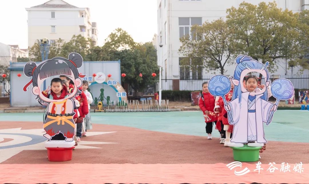 军山凤凰苑幼儿园,迎新活动同样别出心裁。“开学通道”“跳格子”和“新年棒棒糖”……每一个跨栏、格子、糖果,满载着教师们对孩子们的美好祝福,每个班级的教室门口,各班老师还布置了不同创意的迎新环境。