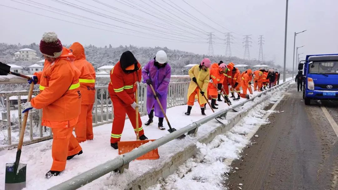 截至目前,区城管局共出动1.1万余人次、车辆1330余台次、撒布机及清理积雪车辆650余台次,对辖区内主次干道路开展融雪除冰工作,在东风高架、三环线、芳草路南太子湖桥、车谷大道等重点道路和桥梁抛洒融雪剂(盐)等700余吨,对人行天桥、人行横道、公交站点铺设防滑草垫2670余条,处理结冰积雪点位990余处,临时增设交通引导岗15处,设置交通引导标志标牌、雨雪天气提示牌、绕行提示牌41块。