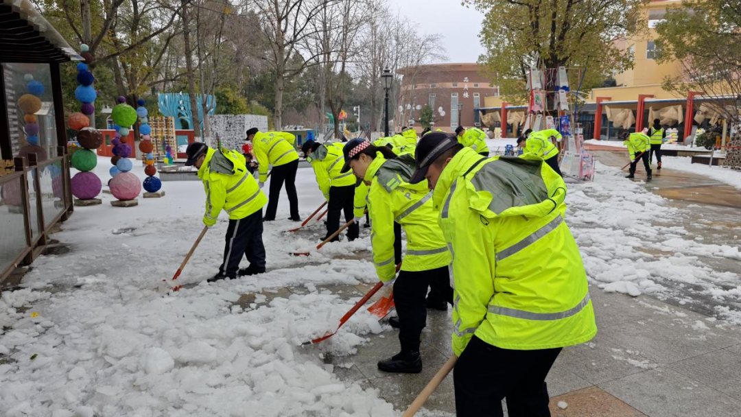 2月23日-24日,沌口街城管中心日均组织出动志愿者及环卫工人80余人,各类除雪机械设备10余台开展针对学校周边的铲雪除冰。