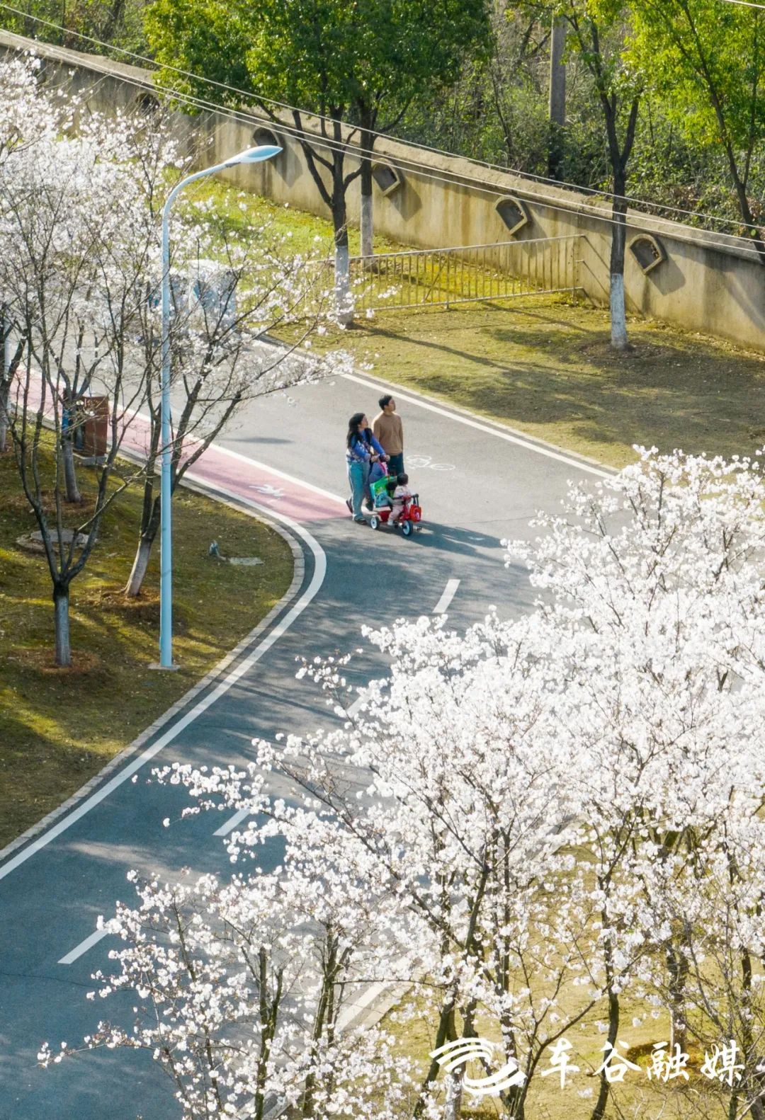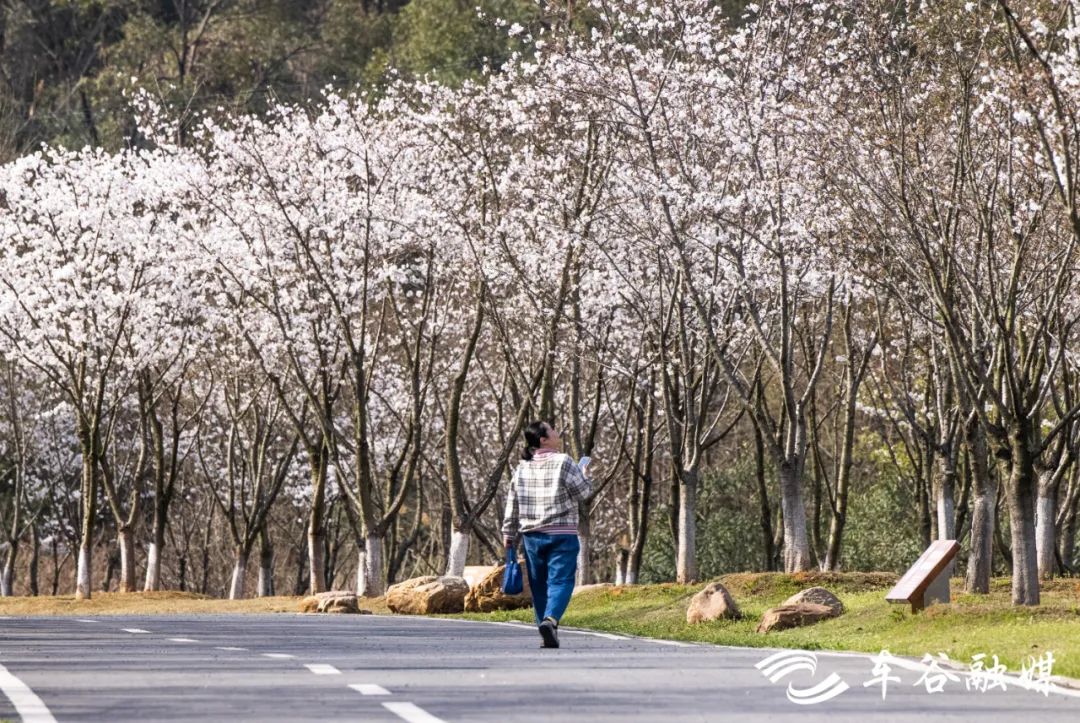 自龙灵山沿车谷大道、东风大道高架进入车城北路,一路繁花相迎,更有唯美的“樱花车站”,解锁春日限定浪漫。