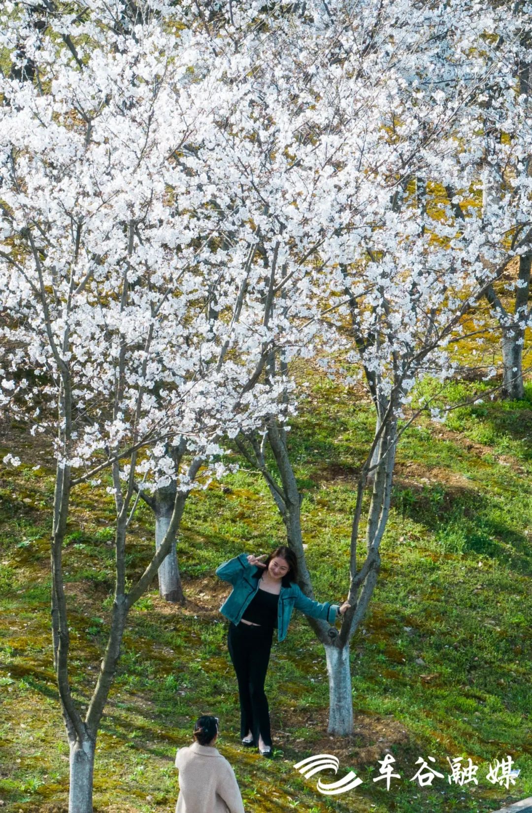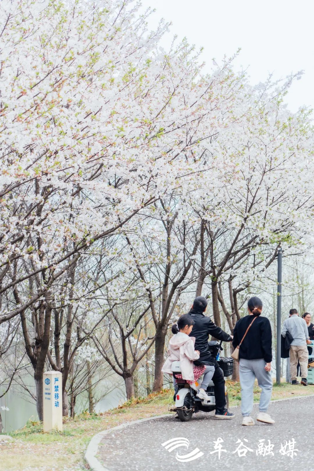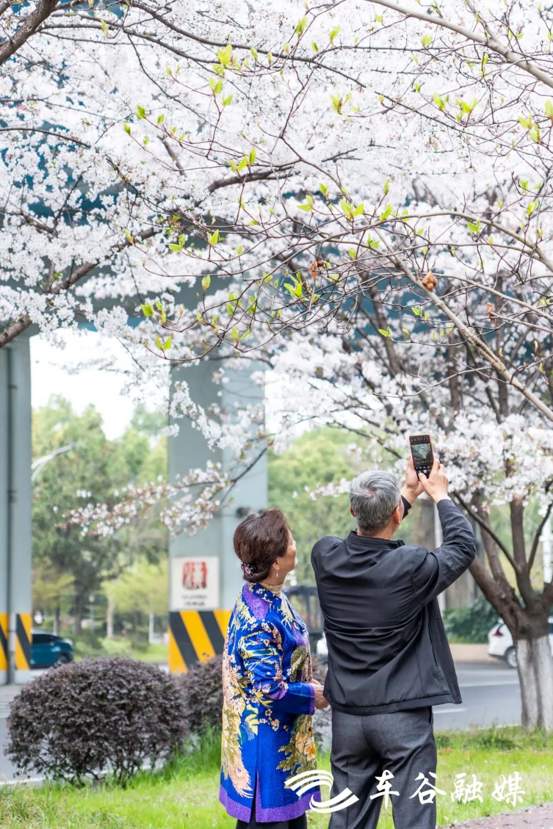 市民们纷纷拿起手机、相机,在樱花树下合影,定格美好时光。