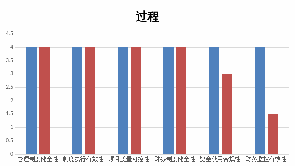“过程”权重24分,下设二级指标“项目管理”、“财务管理”,主要评价项目管理制度的执行、资金使用情况和项目具体实施情况,下设6个三级指标具体评价;