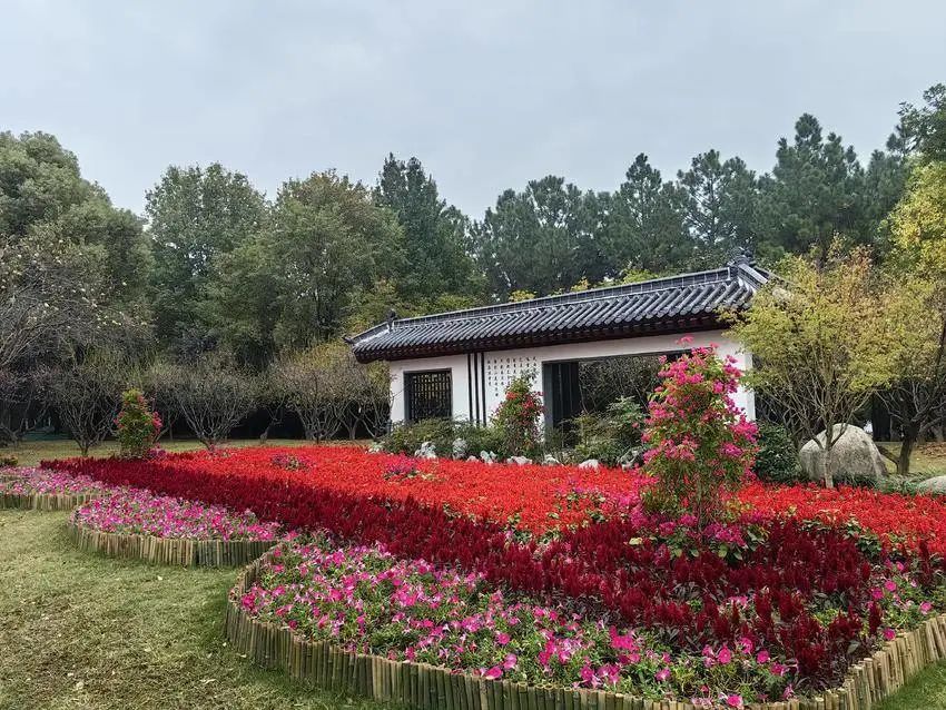 近期,武汉经开区汤湖公园内的木芙蓉、硫华菊、波斯菊盛开,伴着公园国庆期间摆放的一串红、鸡冠花、孔雀草、彩叶草等时令草花,以及沿路的五星红旗迎风飘扬,熠熠生辉,光彩照人。公园内一片片已经开始被秋霜染红或染黄了的乌桕、枫香、银杏、栾树在向人们传达着阵阵秋意。