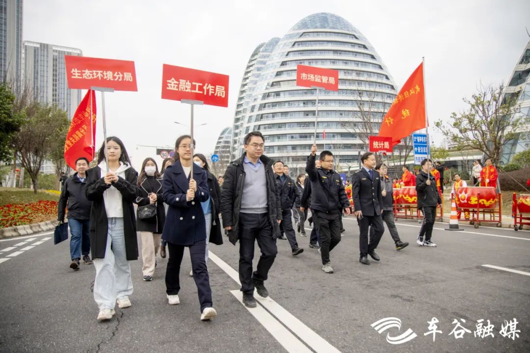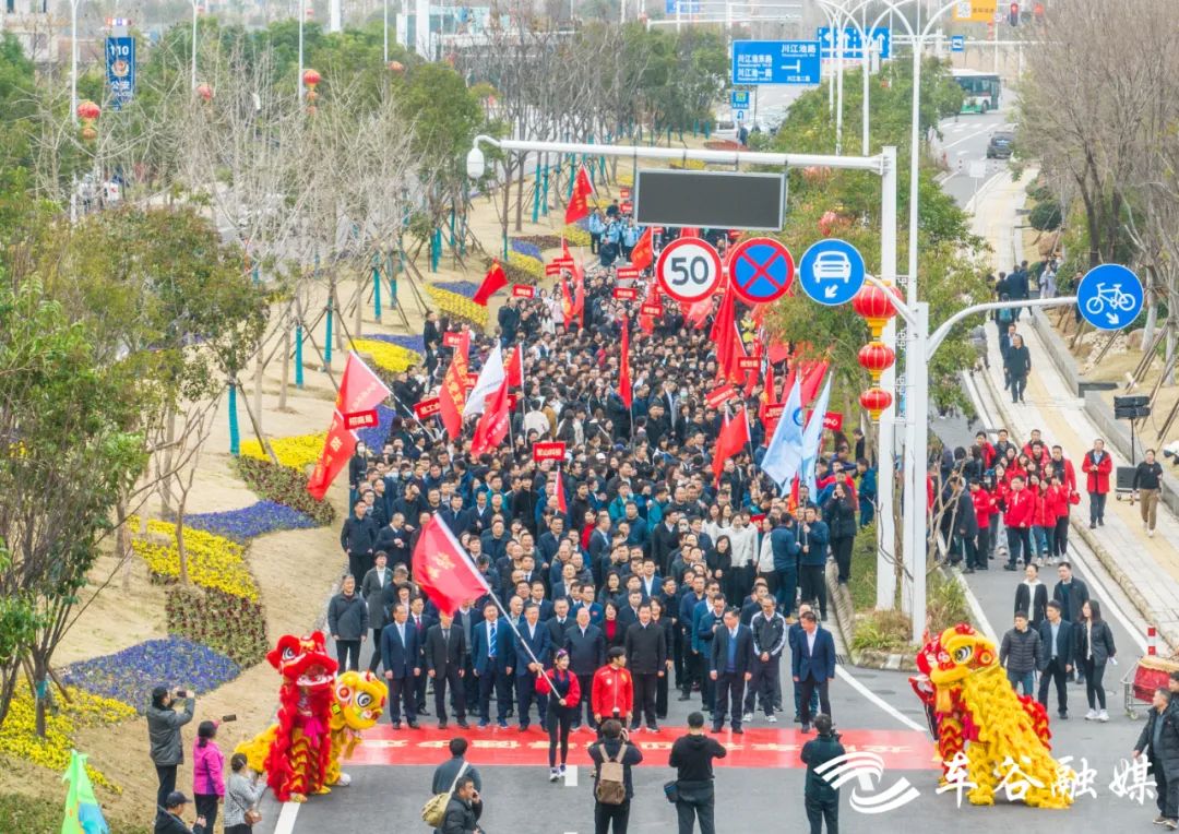 迎着朝阳,上千名车谷党员干部从春笋广场出发,精神抖擞、昂首阔步,沿着川江池绿道,途径鲁迅书店、通顺大道、轩辕书社、军山新城,一路解锁好春光,以昂扬姿态开启龙年新征程。