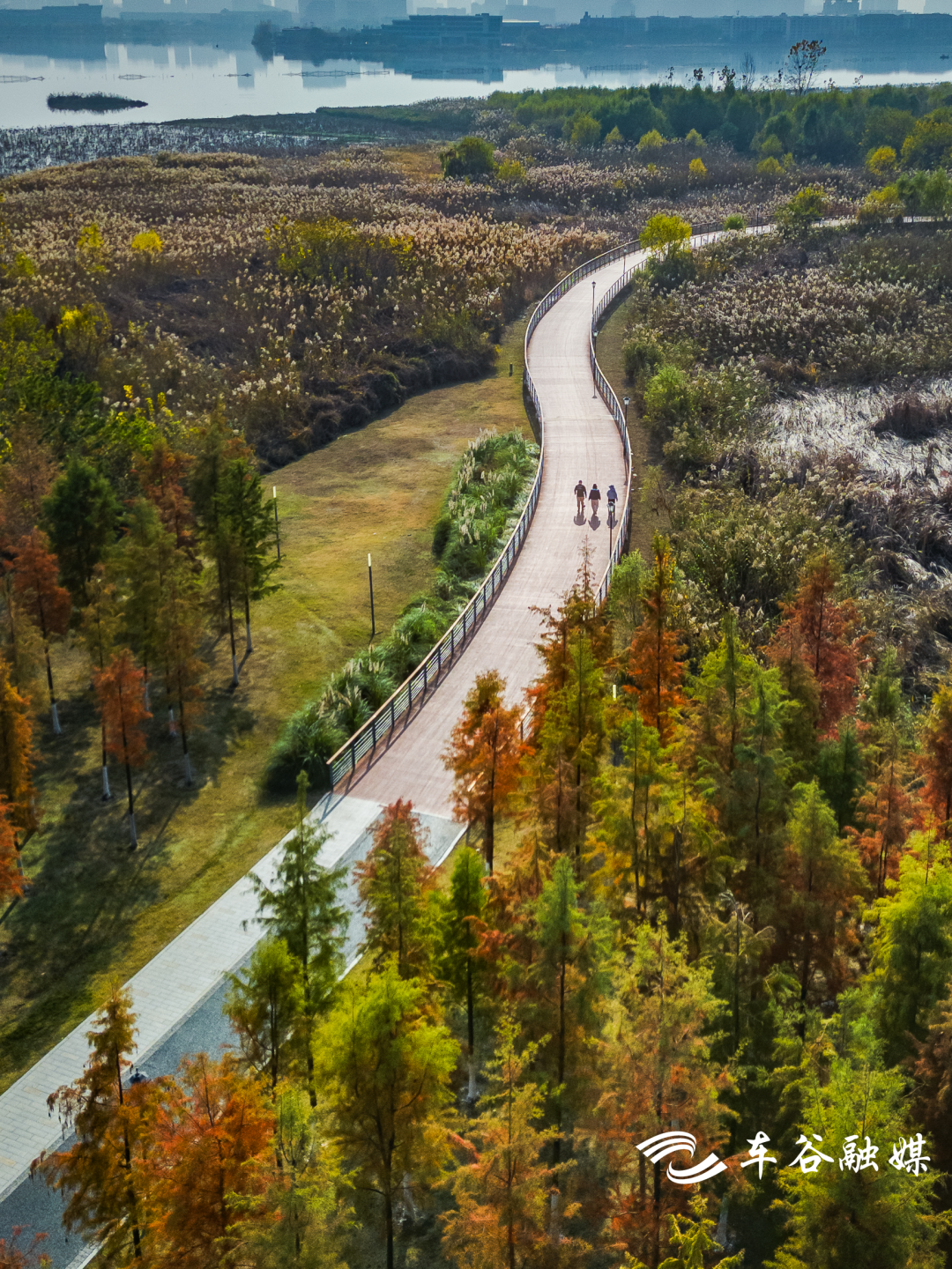 漫步于湖边栈道,成片的红杉和芦苇充满野趣 ,一路上都是惊喜和享受,宛如五彩缤纷的调色板,充满着诗情画意。