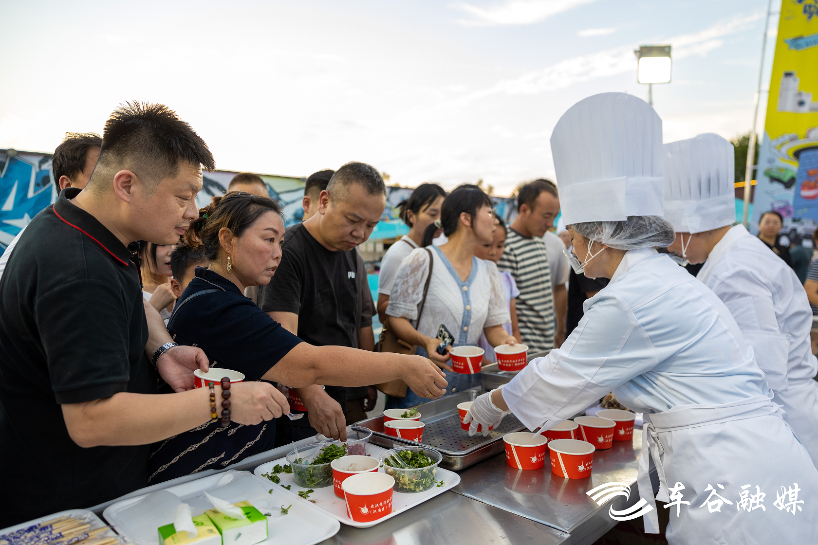 60余家本土美食摊位前烟火升腾,热干面、烤串、小龙虾等特色小吃香气四溢,市民们大快朵颐,畅享夏夜美味。网红“炒粉姐”的摊前早早排起长队,锅铲与锅底碰撞间,烟火味缭绕升起,“未来三天我都会在这里炒粉,欢迎大家来找我吃粉”,“炒粉姐”说道。