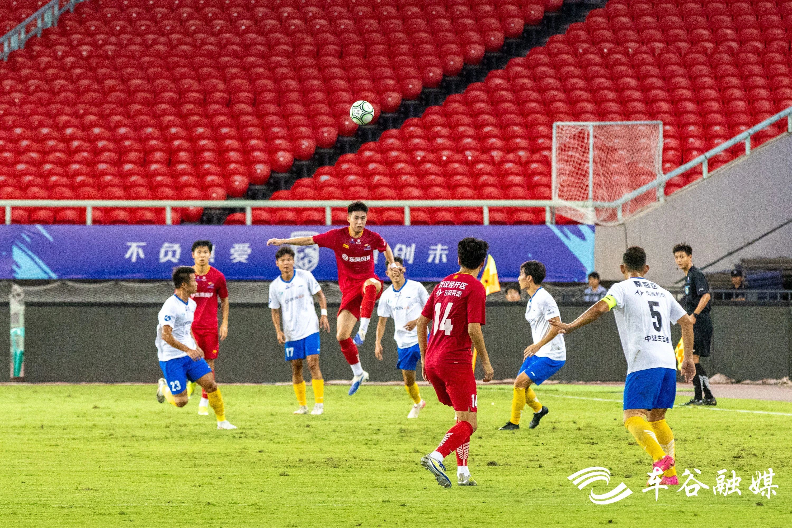 下半场,经开队攻势不减,在现场球迷的齐声高喊中,顶住了蔡甸队的猛烈进攻,最终以1:0取得胜利。