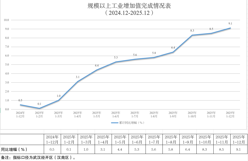 武汉经开区2025年12月规模以上工业增加值