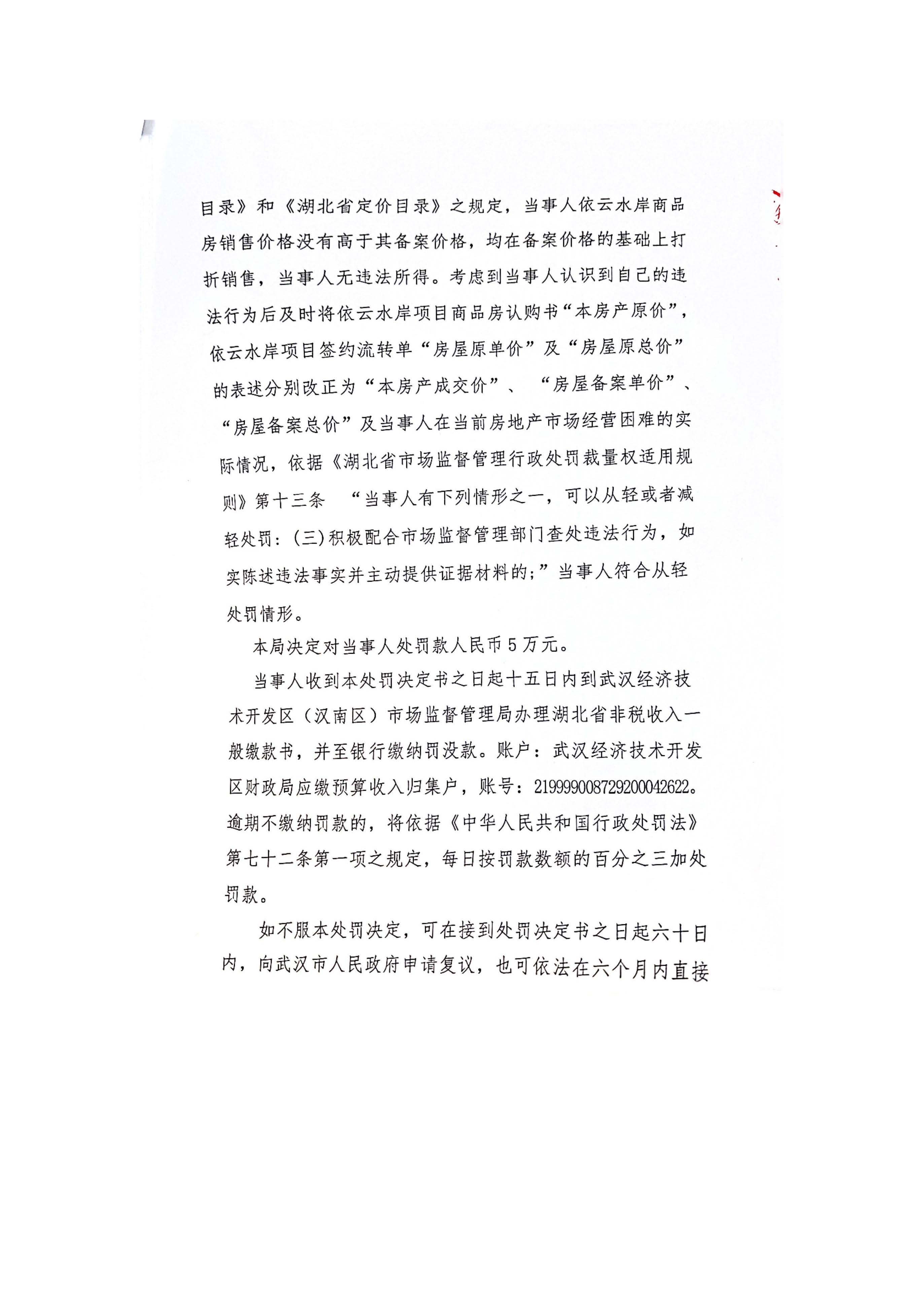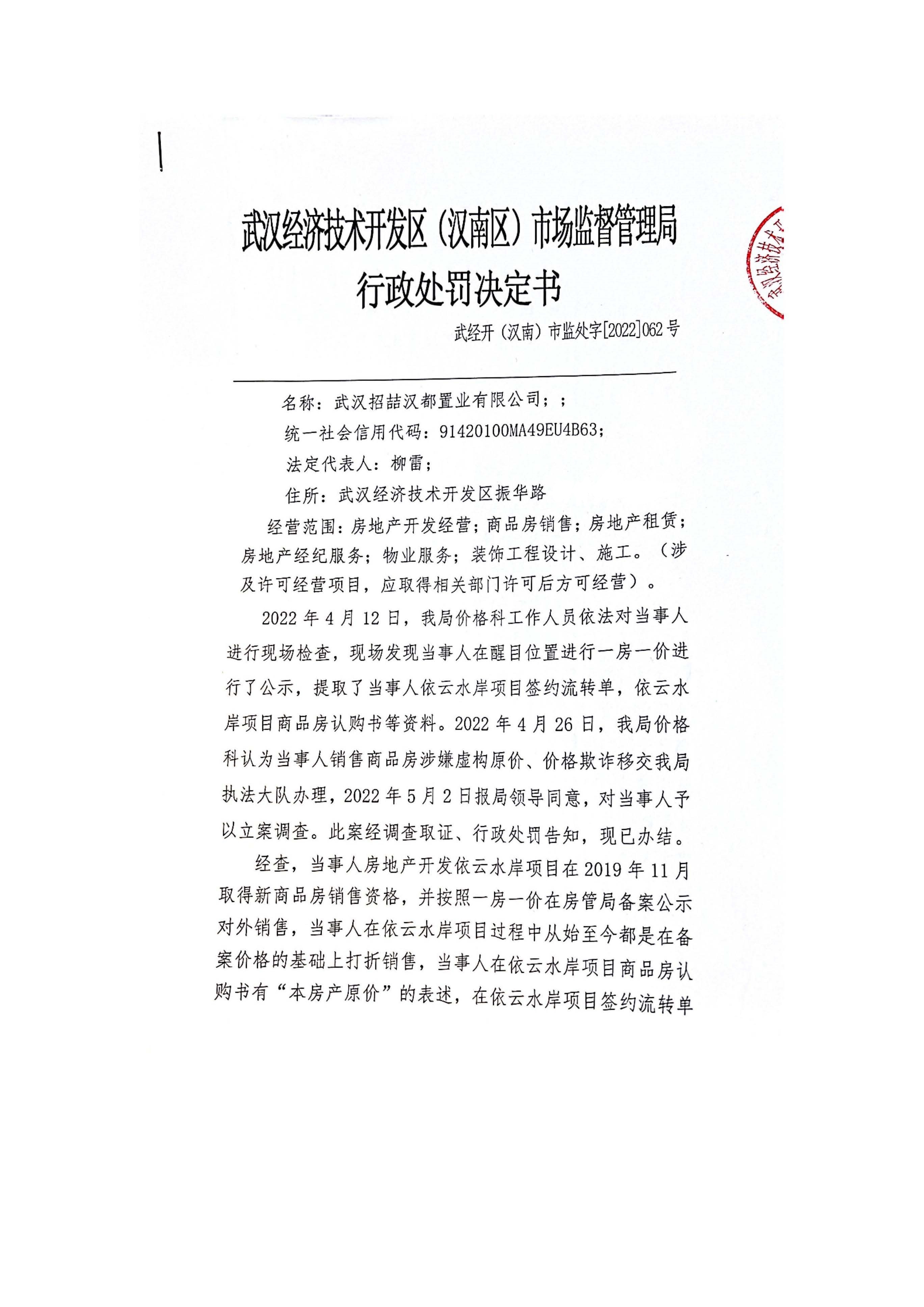 行政处罚决定书(武汉招喆汉都置业有限公司)