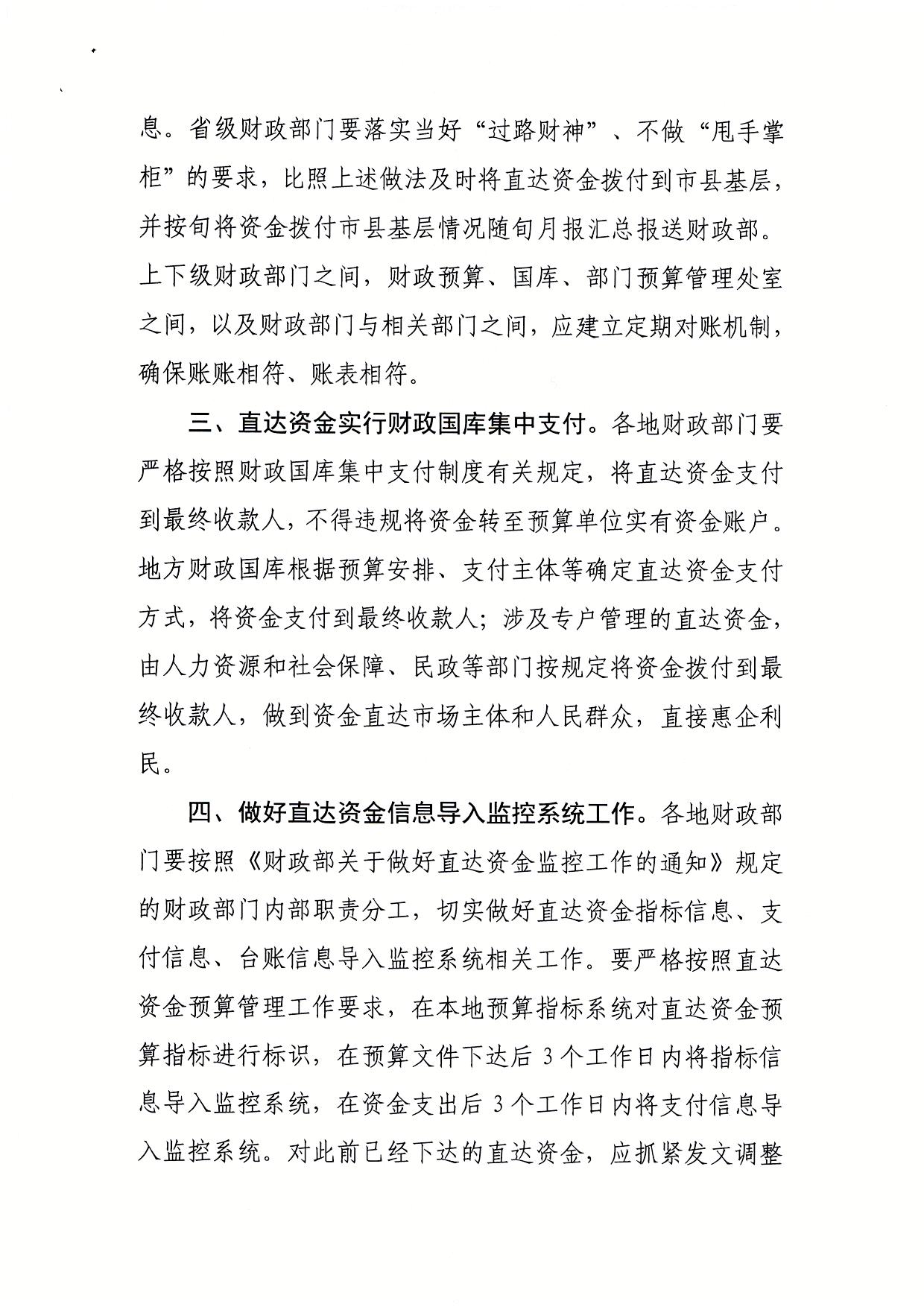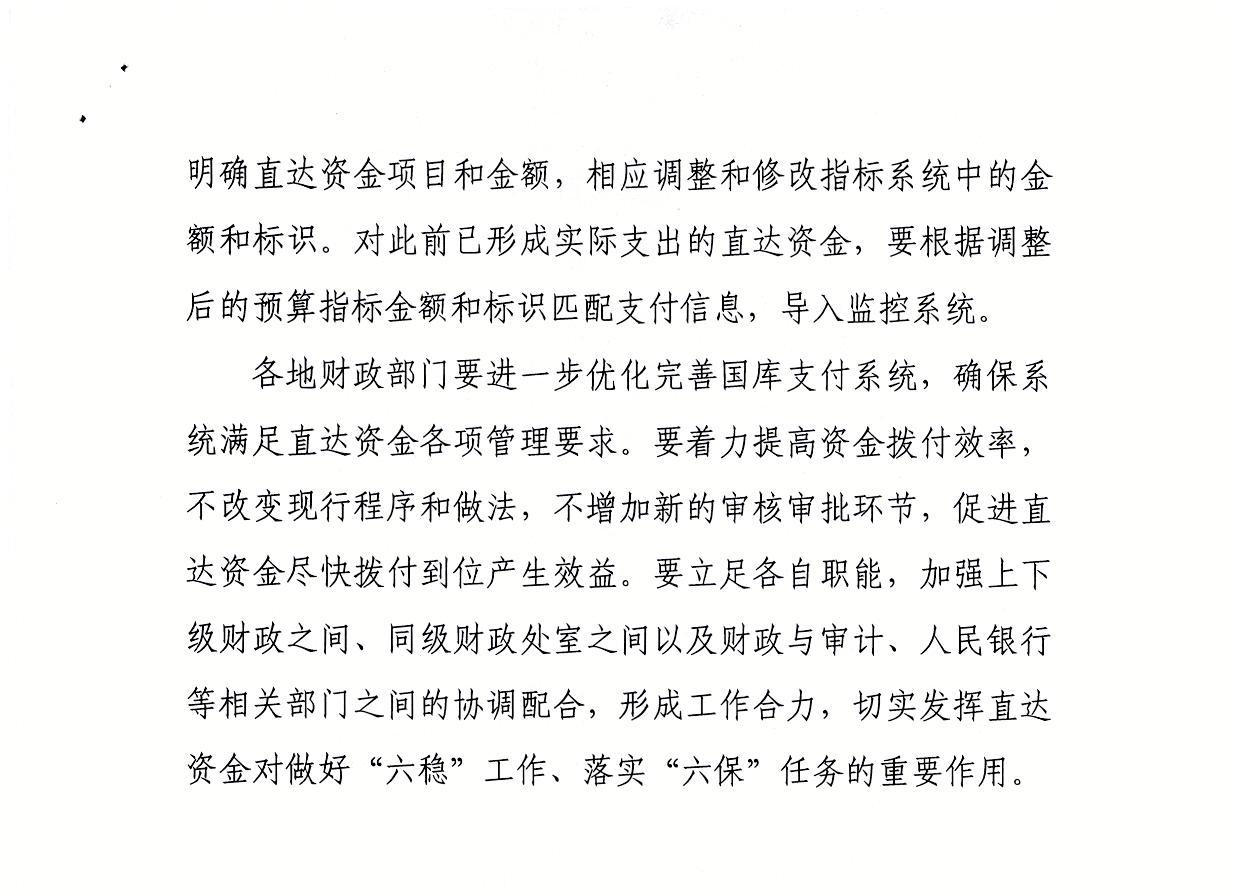 财政部关于做好直达资金预算执行有关工作的通知