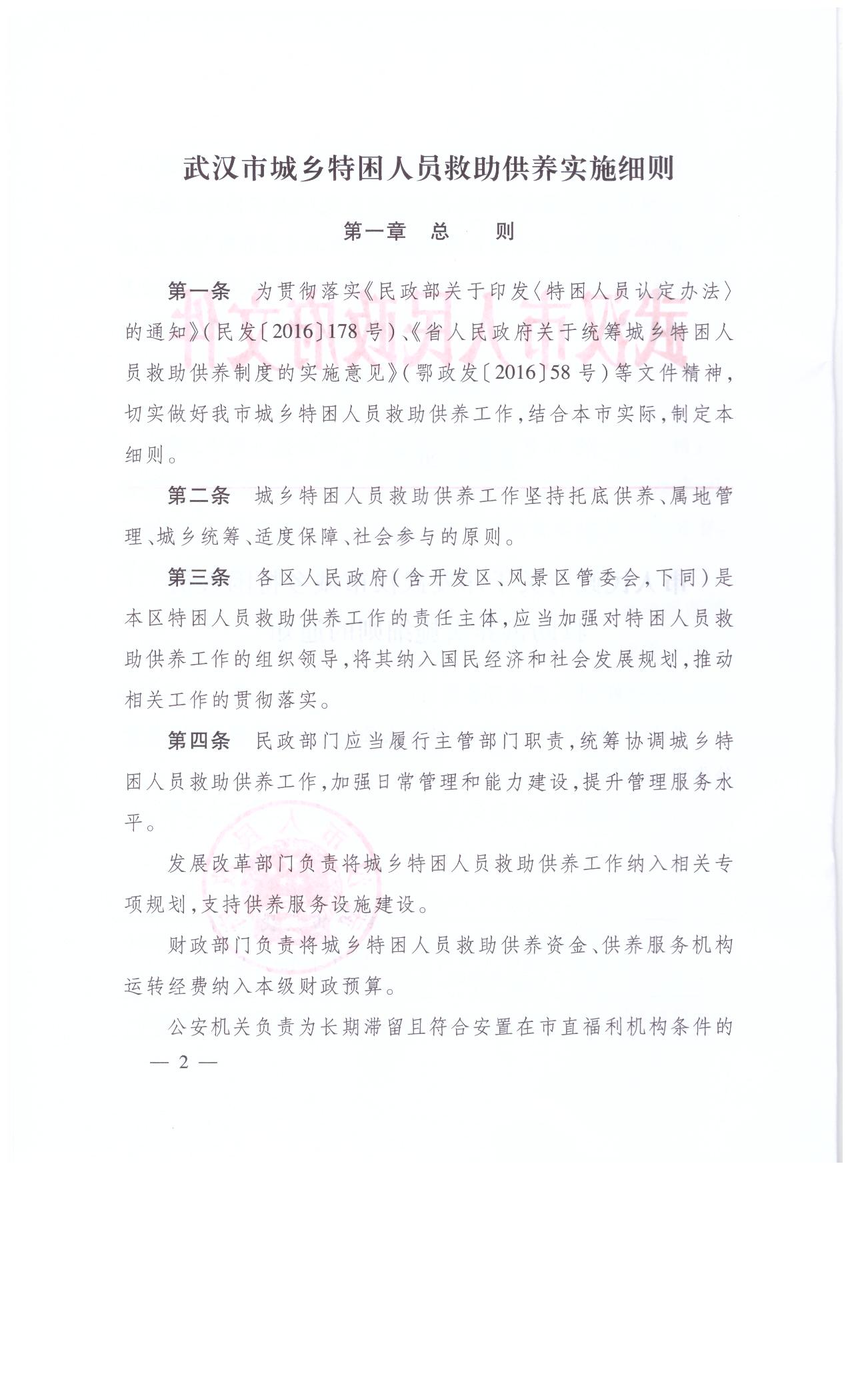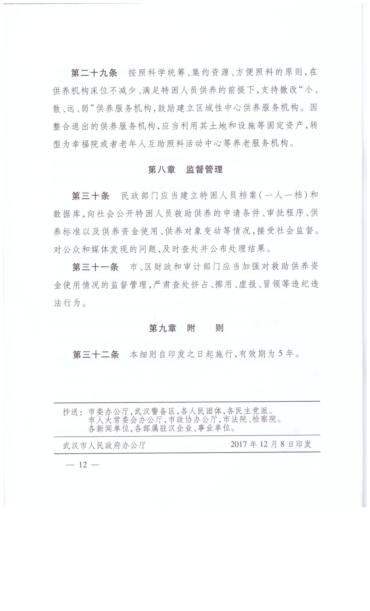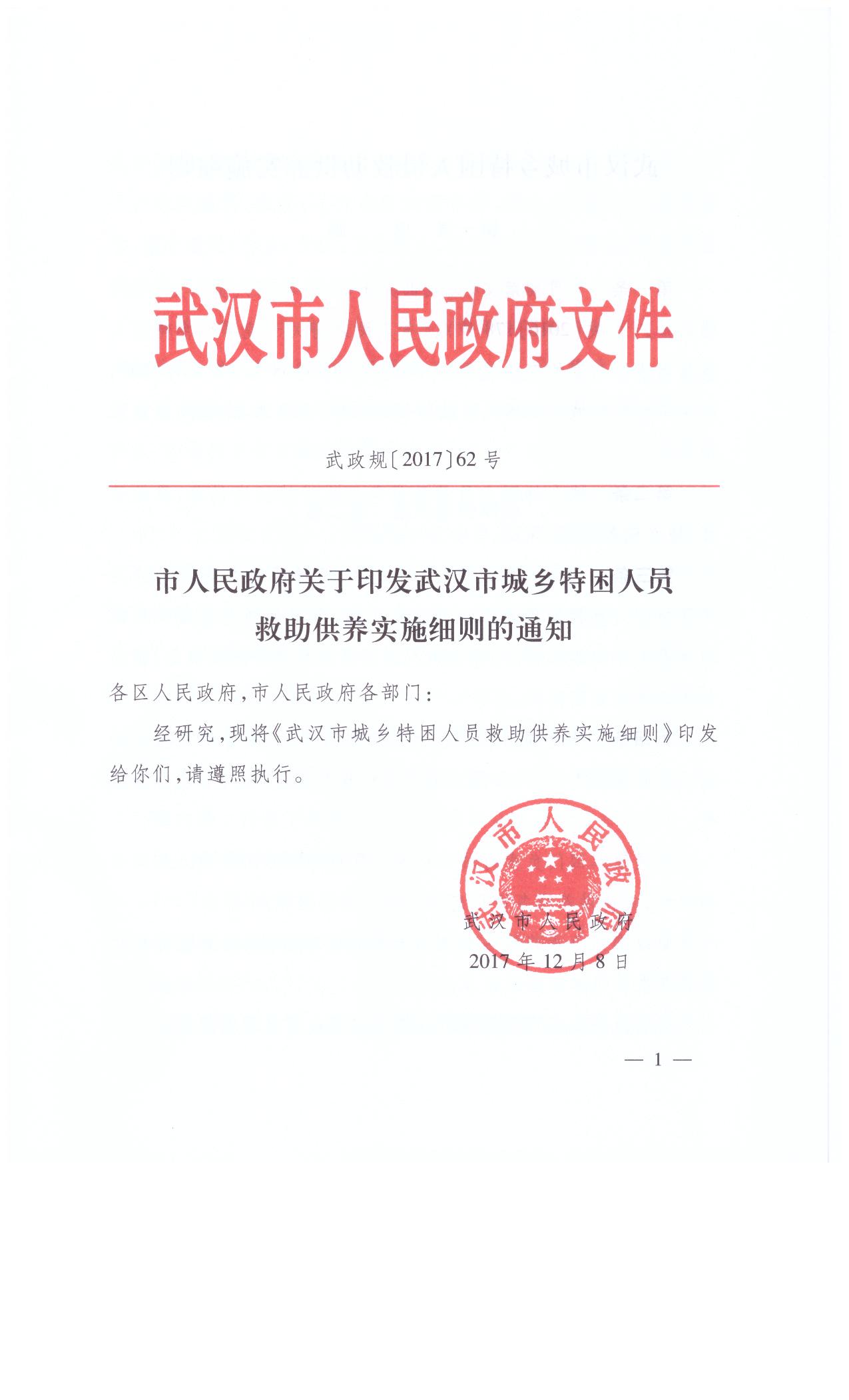 市人民政府关于印发武汉市城乡特困人员救助供养实施细则的通知