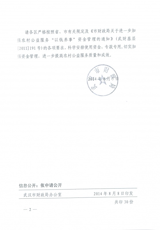 2014年度第一批农村公益性服务“以钱养事”省级补助资金-武财基层[2014]457号