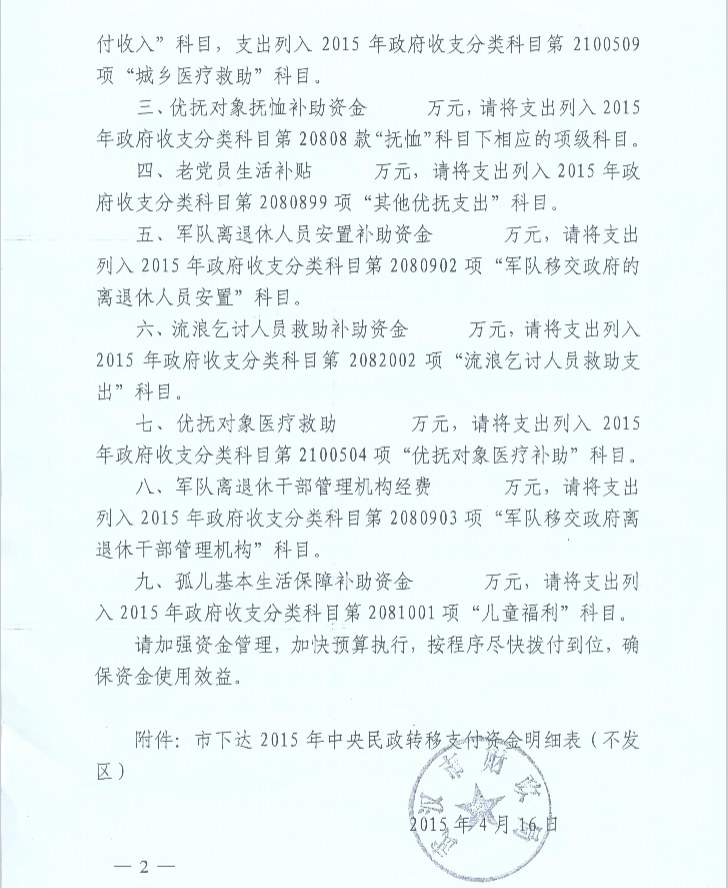 市财政局关于下达2015年中央民政转移支付指标的通知-武财社[2015]242号