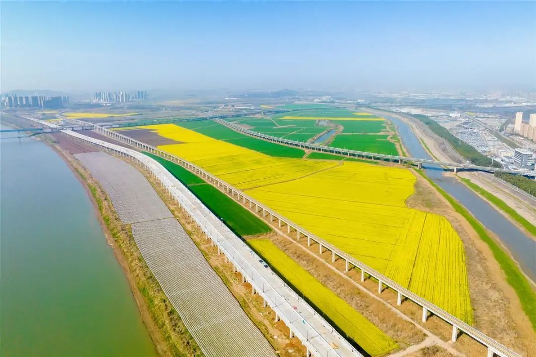 油菜花海中,武汉“最美观江高架桥”建设稳步推进