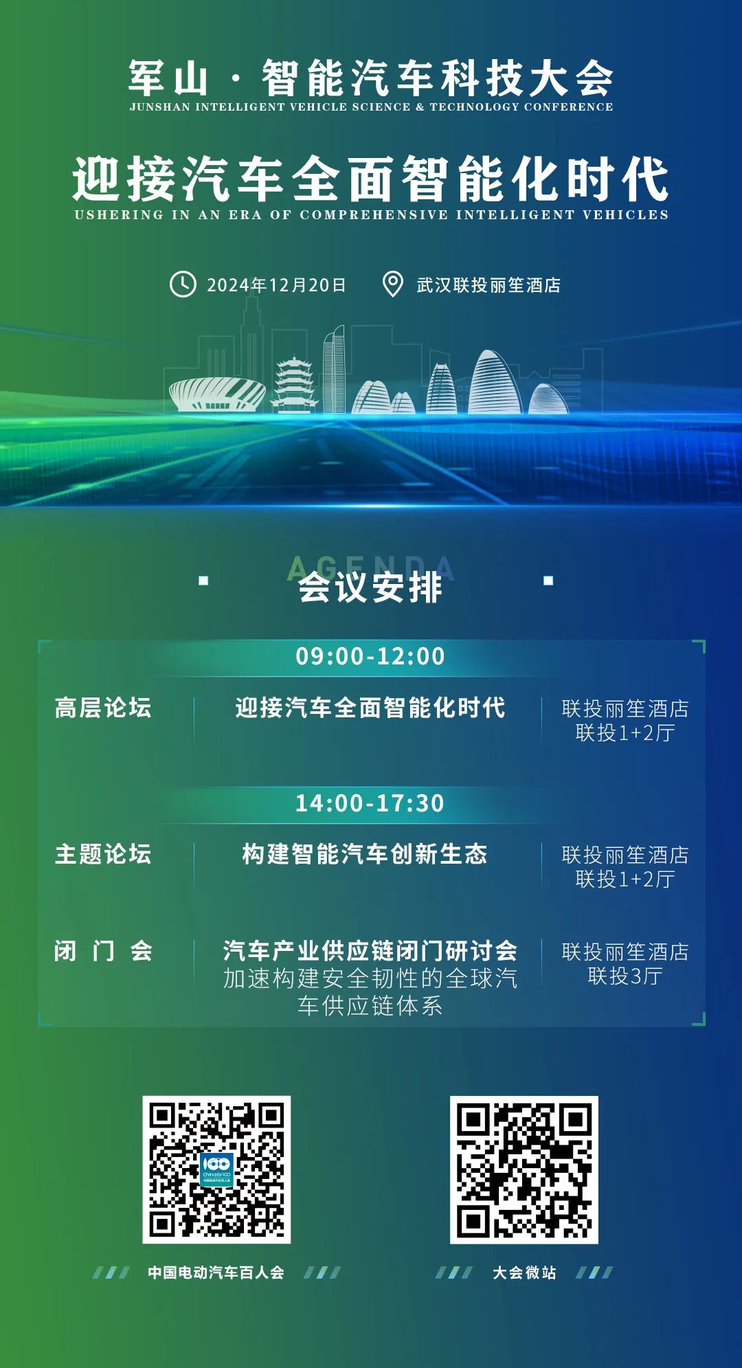 12月20日,首届军山·智能汽车科技大会将在武汉经开区拉开帷幕,此次活动由武汉经济技术开发区管委会、中国电动汽车百人会、中国国际贸易促进委员会机械行业分会联合举办,通过“高端会议+专业赛事+产业展览”,推动新能源智能汽车优质产业资源、科研检测力量、人才智力资源及产业投资等向武汉经开区集聚。届时,汽车行业领军企业、科研院校专家学者、行业组织代表将齐聚中国车谷,围绕智能汽车产业发展的前沿热点展开深入研讨,共同探索智能汽车产业新生态的构建路径。