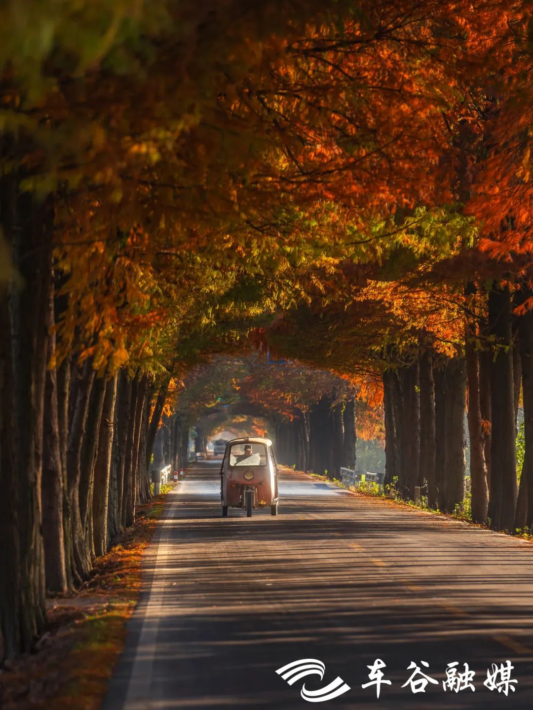光影斑驳的汉洪线「最美乡路」,两边水杉夹道绵延,宛如岁月的诗行书写着光的轨迹。