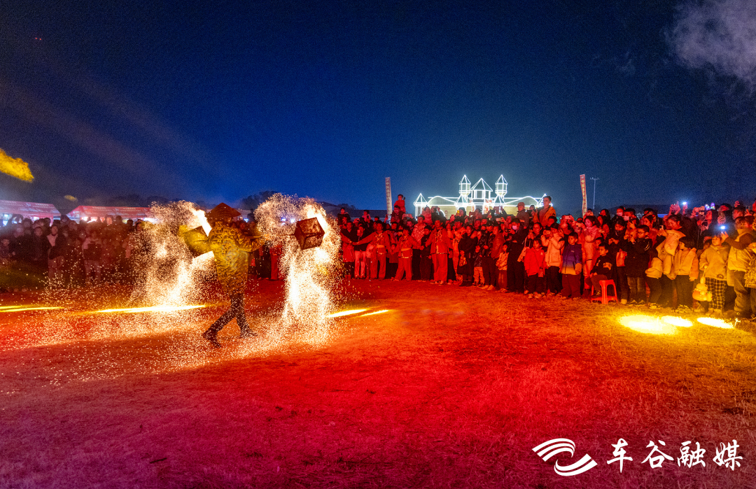 到了主广场,仿佛置身欢乐的海洋。舞台上,唐僧带着大家蹦迪,舞台下,月光女神和悟空草原“相会”,人们点燃篝火、放起烟花,围着篝火载歌载舞,烟花绚烂,照亮夜空。