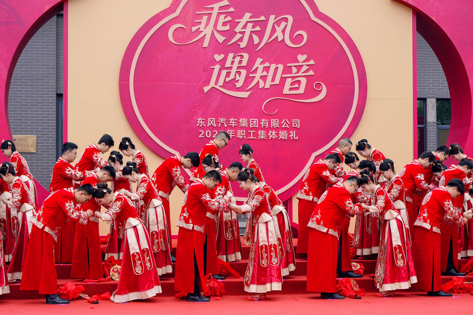 共青团湖北省委书记刘治田,湖北省总工会二级巡视员付家斌,东风汽车集团有限公司党委副书记、工会主席刘艳红出席活动,并为新人们送上新婚祝福。