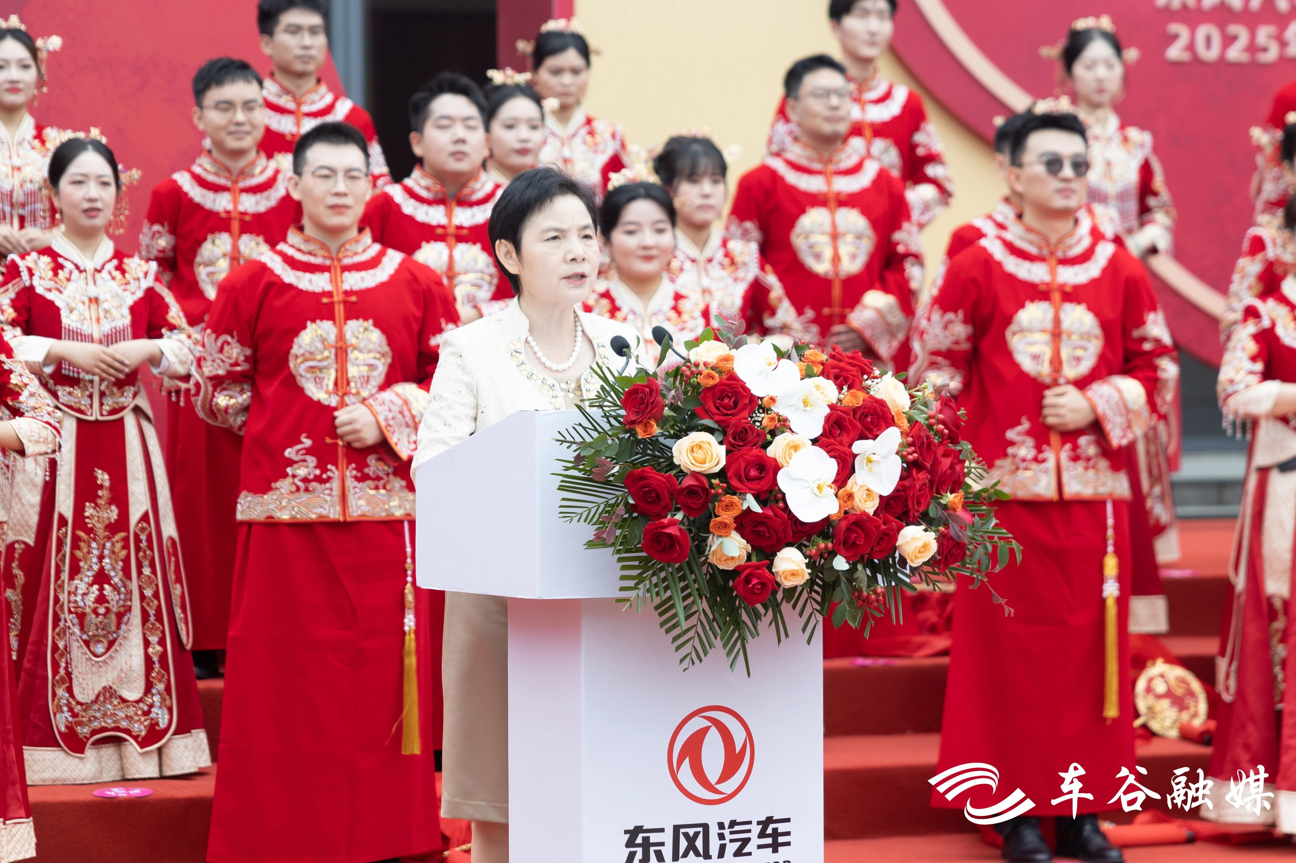 “昔有伯牙子期高山流水遇知音,今有东风良侣天作之合缔鸳盟。”证婚人刘治田在致辞中表示,东风汽车是湖北高质量发展的顶梁柱、产业升级的领头羊、科技创新的主力军。希望来自东风的新人们能够以爱为舟、以家为港,与东风同奋进,与时代共前行,在汽车强国的伟大征程中谱写绚烂的青春诗篇。