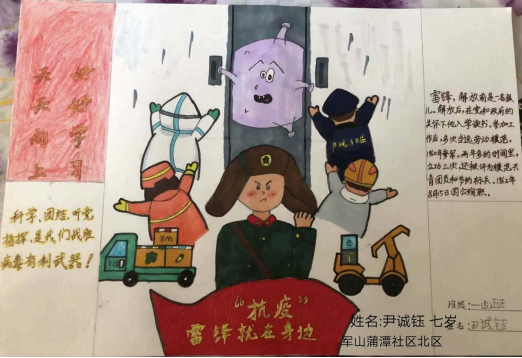 4月7日,蒲潭社区继“宅家战疫线上绕口令”比赛后开启的线上活动第二弹——“童心共绘 抗击疫情”线上绘画大赛完美落幕。此次活动主打亲子抗疫,通过家长指导孩子以绘画、手抄报的方式完成抗疫主题作品,来激发社区青少年对绘画的兴趣,增进亲子之间的感情,共同为抗疫加油鼓劲。