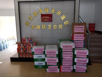 7月31日,武汉市金汇源泉食品饮料有限公司董事长彭巧兰、武汉国电华美电气设备有限公司总经理郭敏华来到武汉开发区市政环卫公司,为环卫突击队祝贺点赞,也为她们送去了酸梅汤、矿泉水、方便面等40余箱慰问物资。区妇联主席常艳、副主席钟波、二级调研员宋曼、区城管局副局长孙礼鹏参加慰问活动。