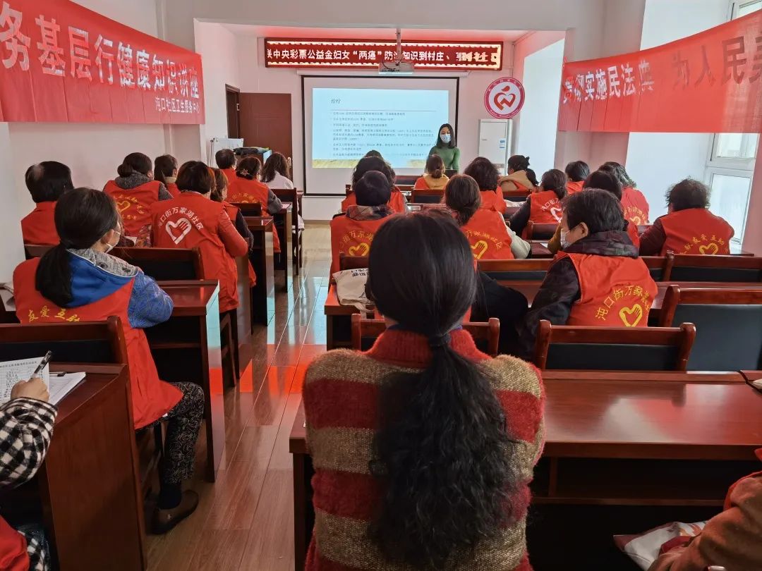 为了增强育龄妇女的保健意识,促进身心健康,把关爱送给女性朋友,沌口街道万家湖社区开展“全国妇联中央彩票公益金妇女‘两癌’防治知识到村庄、到社区活动”,邀请沌口医院医生为辖区居民开展关于女性“两癌”筛查专题讲座,让广大妇女远离疾病困扰,提高妇女健康水平。