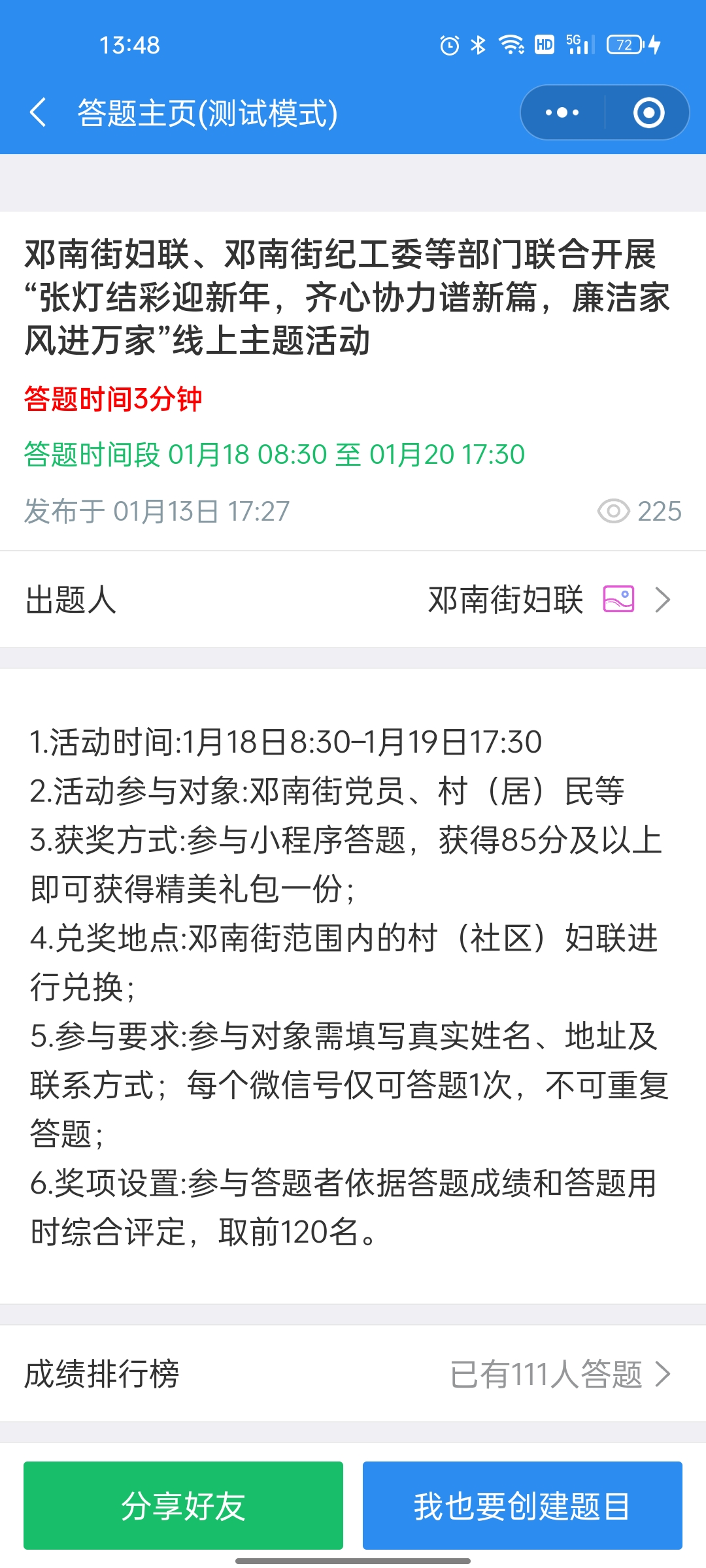 1月18日,答题活动正式拉开了序幕,活动中,居民通过微信小程序进行线上答题,通过该种方式,不仅极大的便利了居民,同时扩大了活动范围,通过在有限的时间内精准回答问题即可解锁“新春福袋”一份,此次活动得到了居民的一致认可,参加人数达到了400多人,为居民送去“新春礼包近200多份。