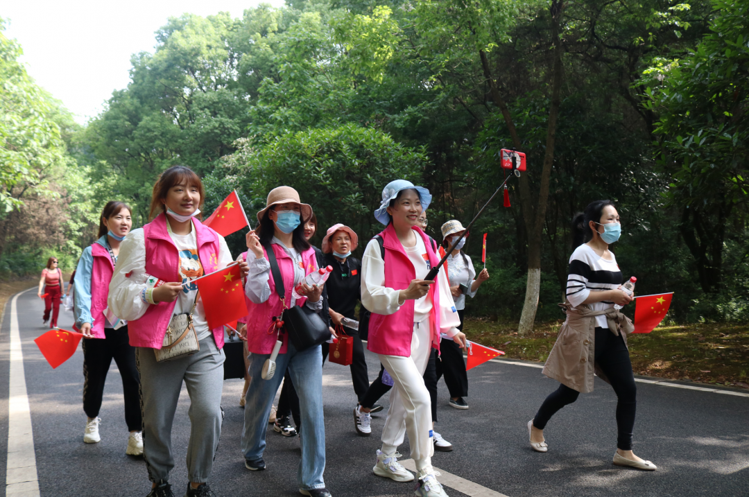5月7日上午,绿荫路社区妇联组织辖区最美家庭、文明家庭、廉洁家庭、党员家庭代表共计40余人开展“学党史,强体魄”母亲节主题龙灵山生态公园徒步活动。