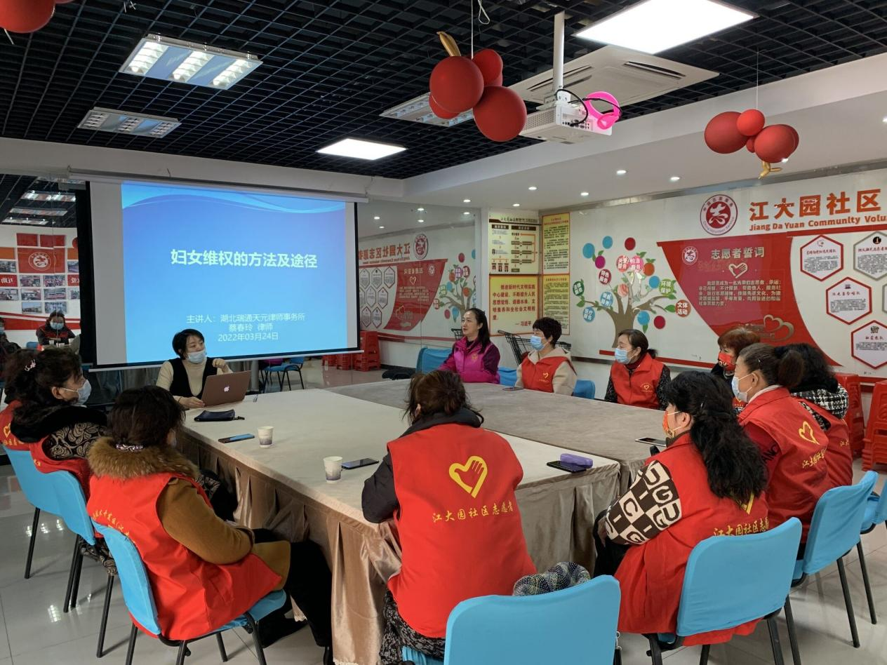(通讯员余秋荣)为进一步提升社区妇女法律意识和权益观念,促进妇女对劳动权益、婚姻财产、家庭暴力等法律知识的学习,3月28日上午,沌阳街江大园社区妇联在妇女之家开展“女性维权的方法及途径”法律知识讲座,社区妇联执委及群众代表参加了讲座。