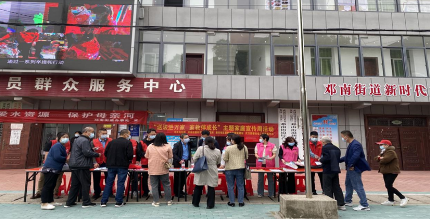 值此5.15日国际家庭日来临之际,邓南街在振兴社区开展家庭教育宣传活动。此次宣传以“美好生活 民法典相伴”为主题,让居民了解到:家庭教育是教育的起点和基点,家庭以立德树人为根本任务,引导居民用好《民法典》,自觉遵守法律法规。同时也向居民开展了《家庭教育促进法》、《未成年人保护法》、《长江保护法》、《环境保护法》等法律法规知识及垃圾分类、水资源保护、光盘行动、文明礼仪、清廉文化等知识,向到场的居民发放宣传折页及宣传手提袋200余份。居民王大妈笑呵呵地说“家庭教育我们还得参与,肩上担子不能卸哦。”