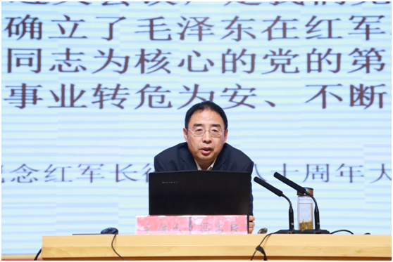 “在百年接续奋斗中,党团结带领人民开辟了伟大道路,建立了伟大功业,铸就了伟大精神,积累了宝贵经验,创造了中华民族发展史、人类社会进步史上令人刮目相看的奇迹。我们要继续发扬斗争精神,付出更加艰苦的努力,在办实事中开新局谱新篇。”报告会上,冯占民教授以开展党史学习教育的重要意义和基本要求为切入点,从新民主主义革命、社会主义革命与建设、中国特色社会主义建设、中国特色社会主义新时代四个阶段,带领参会人员一起重温了中国共产党百年来领导全国人民开天辟地、改天换地、翻天覆地、惊天动地的波澜壮阔历史。