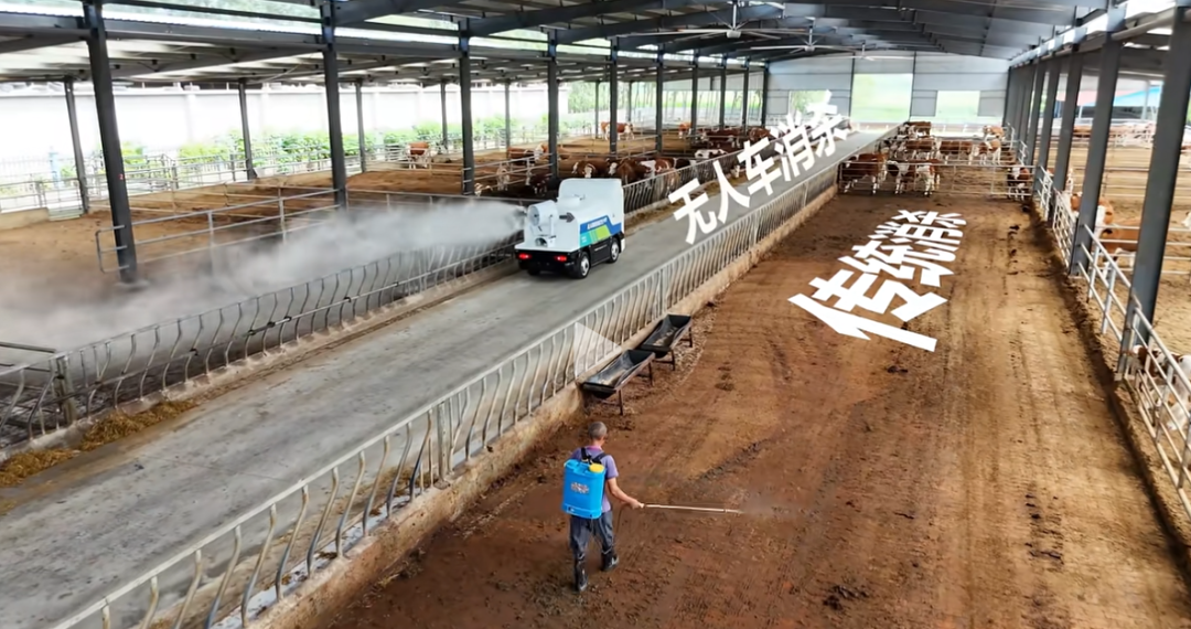 近日,在湖北沙洋的一家养殖场内正上演一场科技变革:一辆配备L4级无人驾驶消杀车缓缓向前,可调节炮筒喷射出的消毒雾滴覆盖了广阔区域,同时,一名工作人员手持喷雾器,才到养殖场三分之一处。