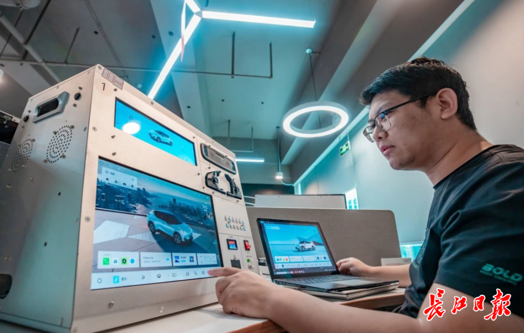9月16日,记者走进位于武汉经开区的亿咖通科技研发中心,工程师们正围绕“舱驾一体”中央计算和车载AI应用进行技术攻关。实验室里,80多台车机设备整齐排列,屏幕上闪烁着各种测试界面——有的进行上下电压力测试,有的模拟用户高频点击,宛如智能座舱的“极限挑战营”。