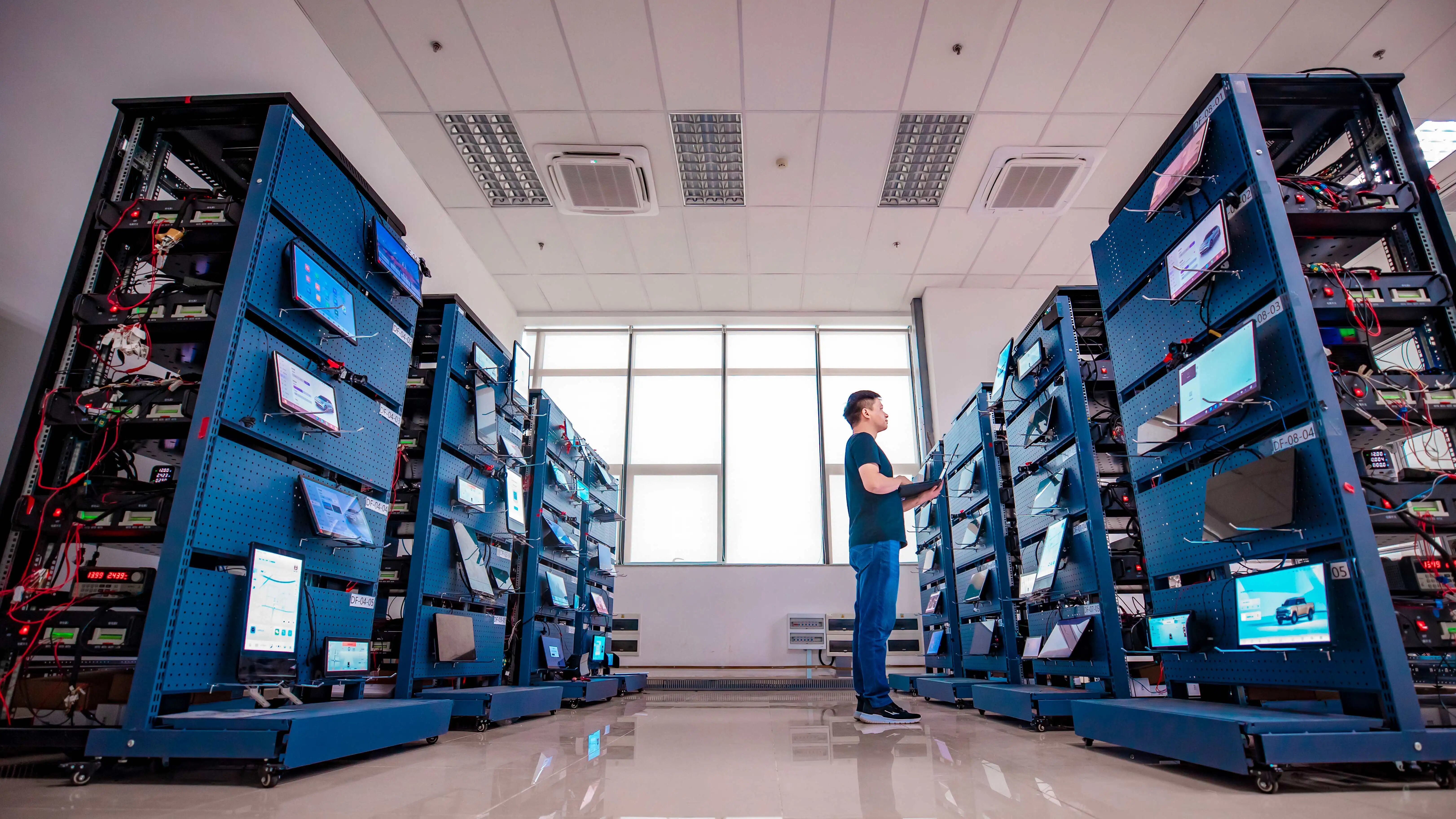 ▲工程师正在自动化测试实验室进行测试。