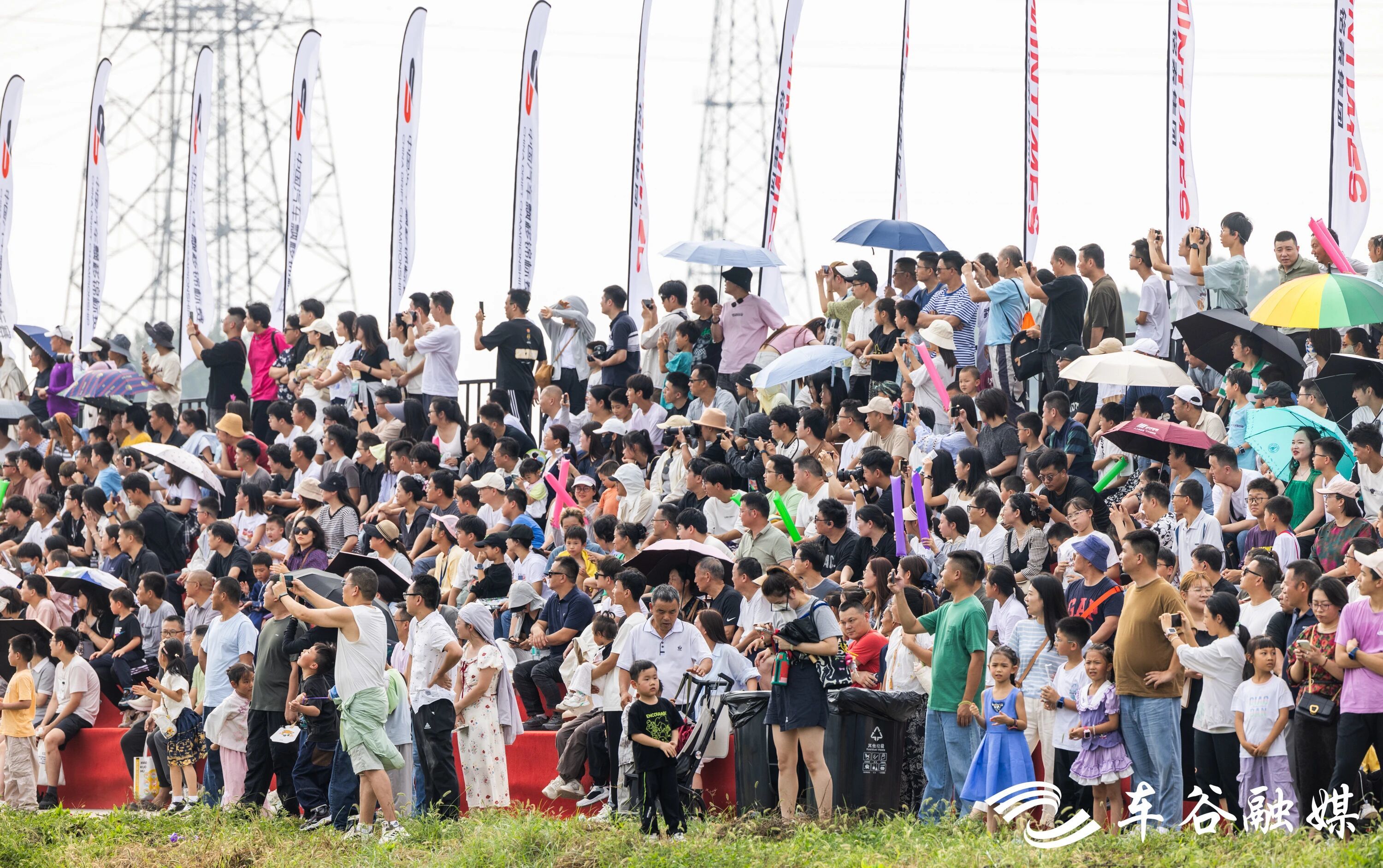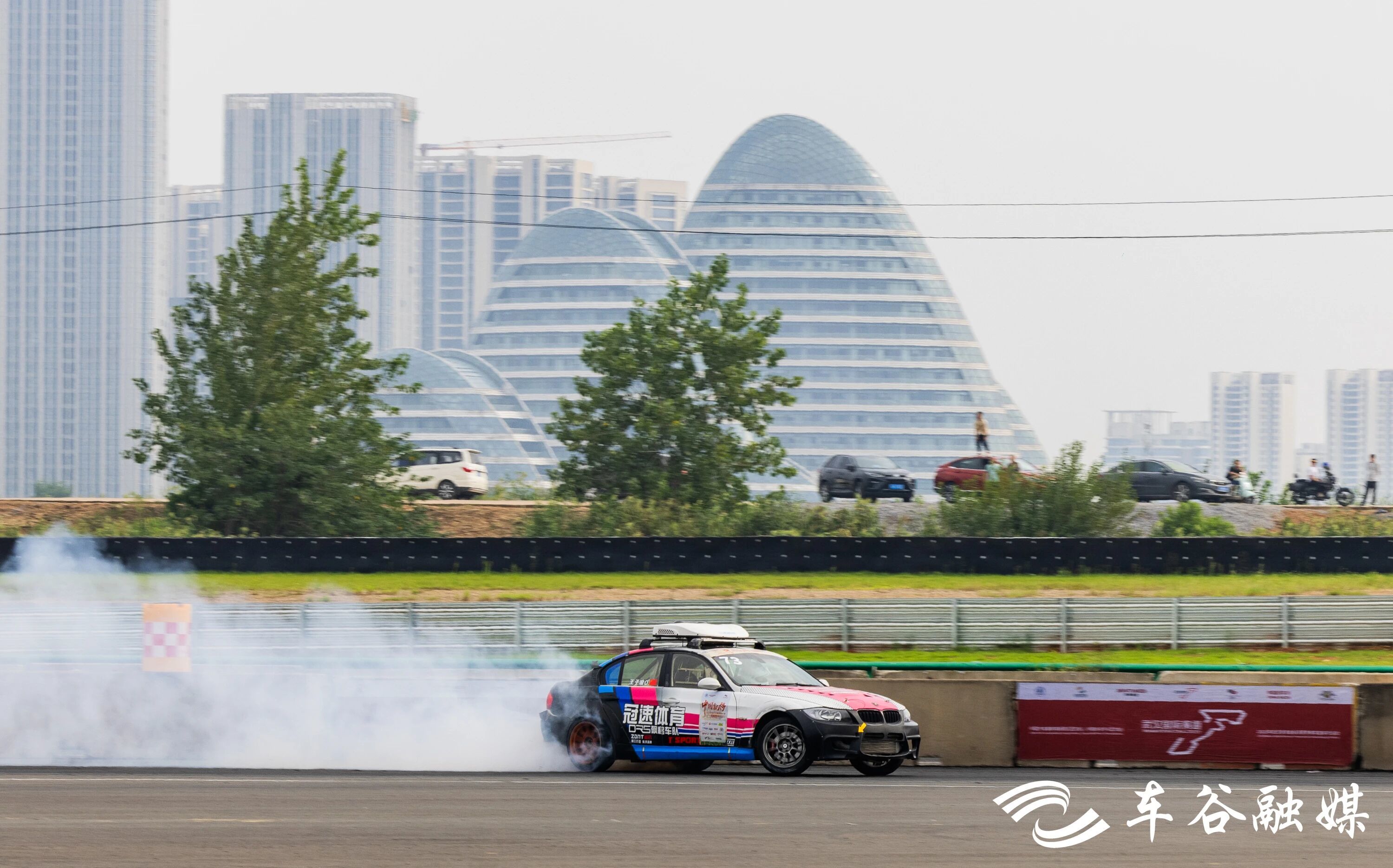 下午2点,伴随激昂的音乐和汽鸣笛声,参赛车队依次驶入赛道,现场顿时沸腾起来,看台上座无虚席,观众欢呼不断,纷纷举起手机记录。