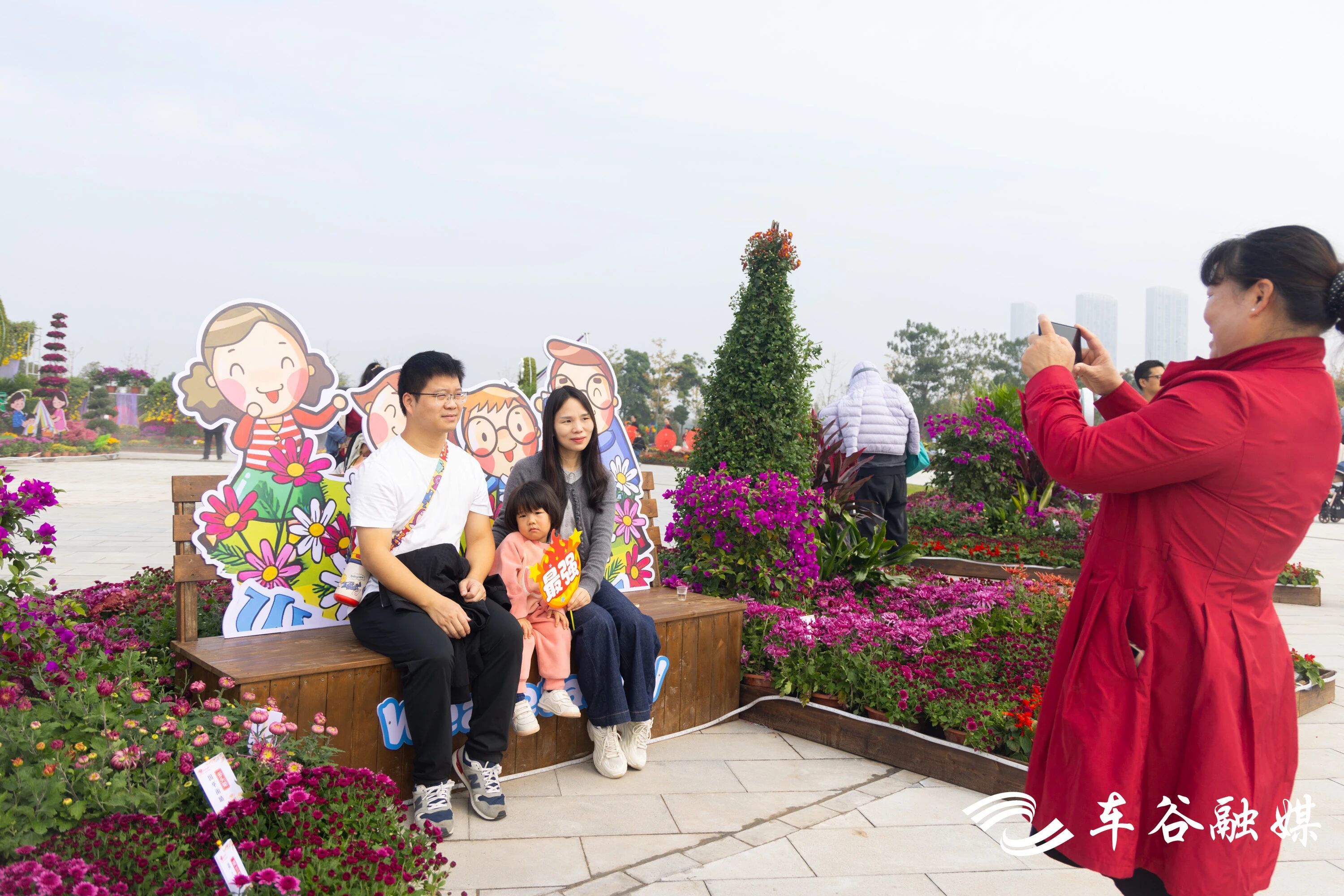 本届菊展共展出菊花5万余株,汇集独本菊、多头菊、九头菊、案头菊等近500个品种,堪称一本菊花“百科全书”,每一朵都亭亭玉立、绚丽多彩,展现着千姿百态的菊韵风姿。孩子们的嬉戏声在花坛间回荡,家长驻足花前,时而俯身赏菊,时而拍照打卡。“今年的菊花比去年开得更好,孩子第一次见到这么多菊花,特别开心!”正为女儿拍照的张女士笑着说道。