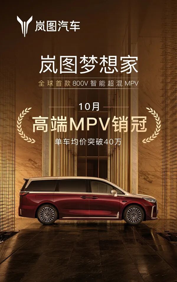11月11日,10月汽车销量榜单发布,岚图梦想家以单月6632辆的销量蝉联10月高端MPV销量冠军,自2022年上市至今,岚图梦想家已累计交付超15万辆。