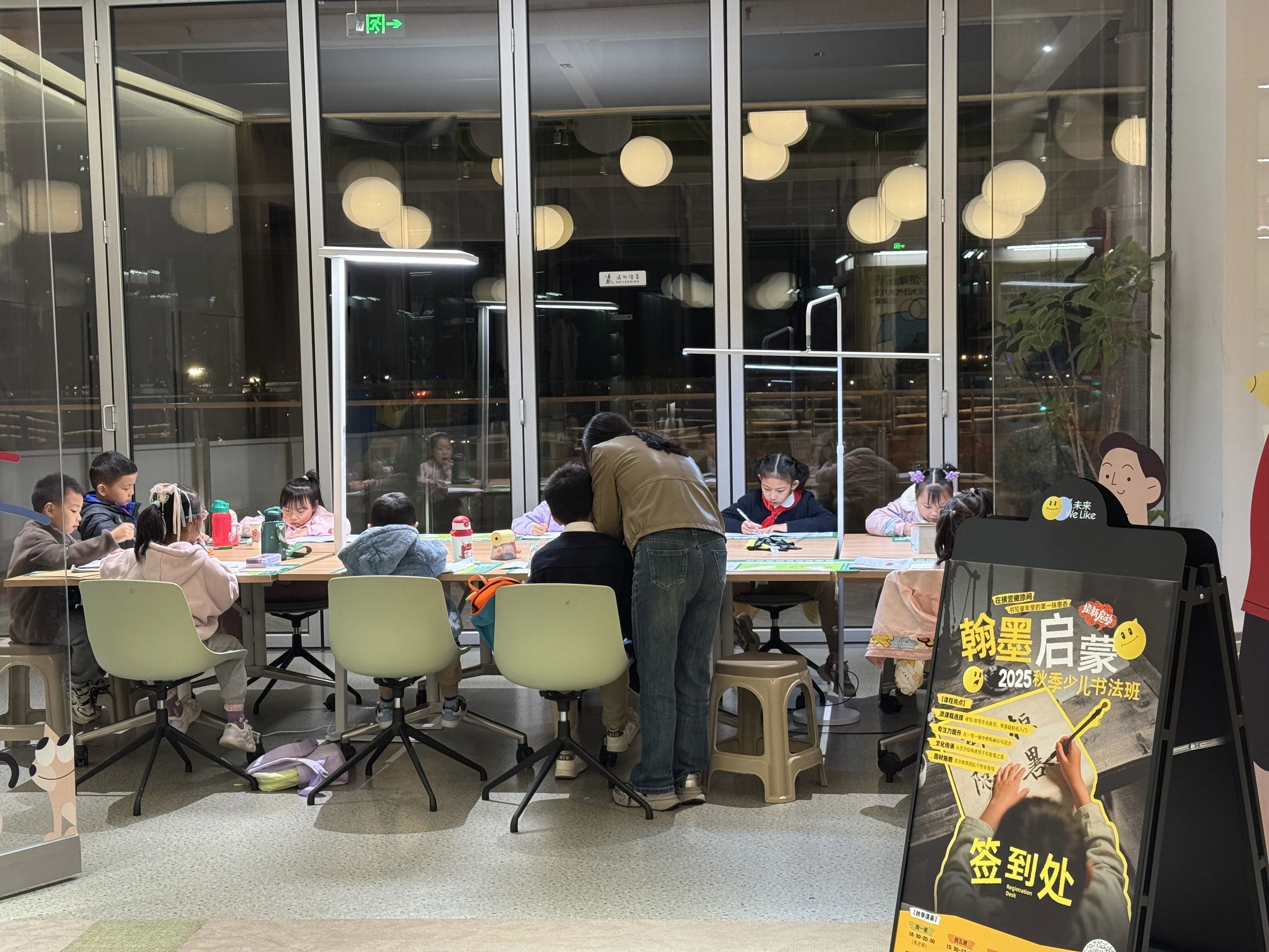 今年寒暑假,未来中心小区利用社区的公共空间,开展家楼下的社区夏令营、冬令营。孩子们在这里不仅学习了搭建木屋、走进医院学习医疗急救知识等实用技能,同时还走进汽车工厂看新能源汽车的制造、去户外看了萤火虫……增长了孩子们的视野,体验世界的神奇。而在日常周末,小区物业联合业主及社会资源,共创落地书法训练营、科学实验课堂、英语角、研学课程等常态化教育活动。