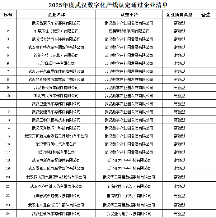 近日,2025年度武汉市数字化产线认定通过企业名单正式公布,武汉经开区共有24家企业成功入选,获评总数位居全市第一。