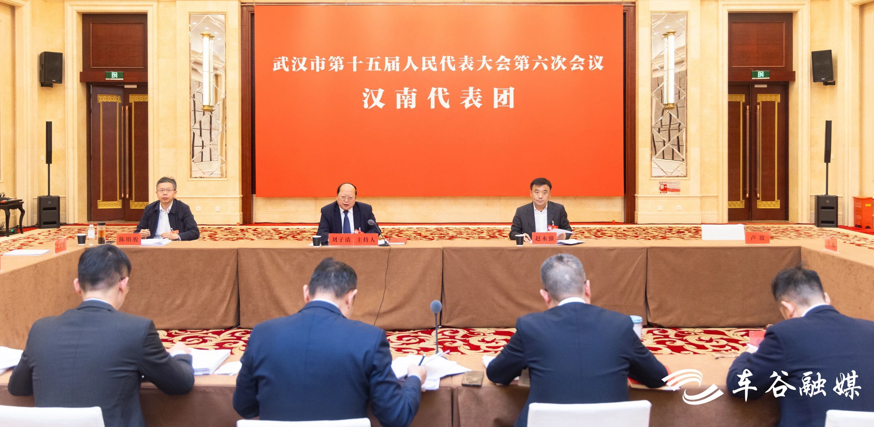 市人大代表、市委常委、武汉经开区党工委书记、汉南区委书记刘子清主持会议并发言。市人大代表、武汉经开区管委会主任、汉南区长赵永强,市人大代表、汉南区人大常委会主任陈明骏参加审议。